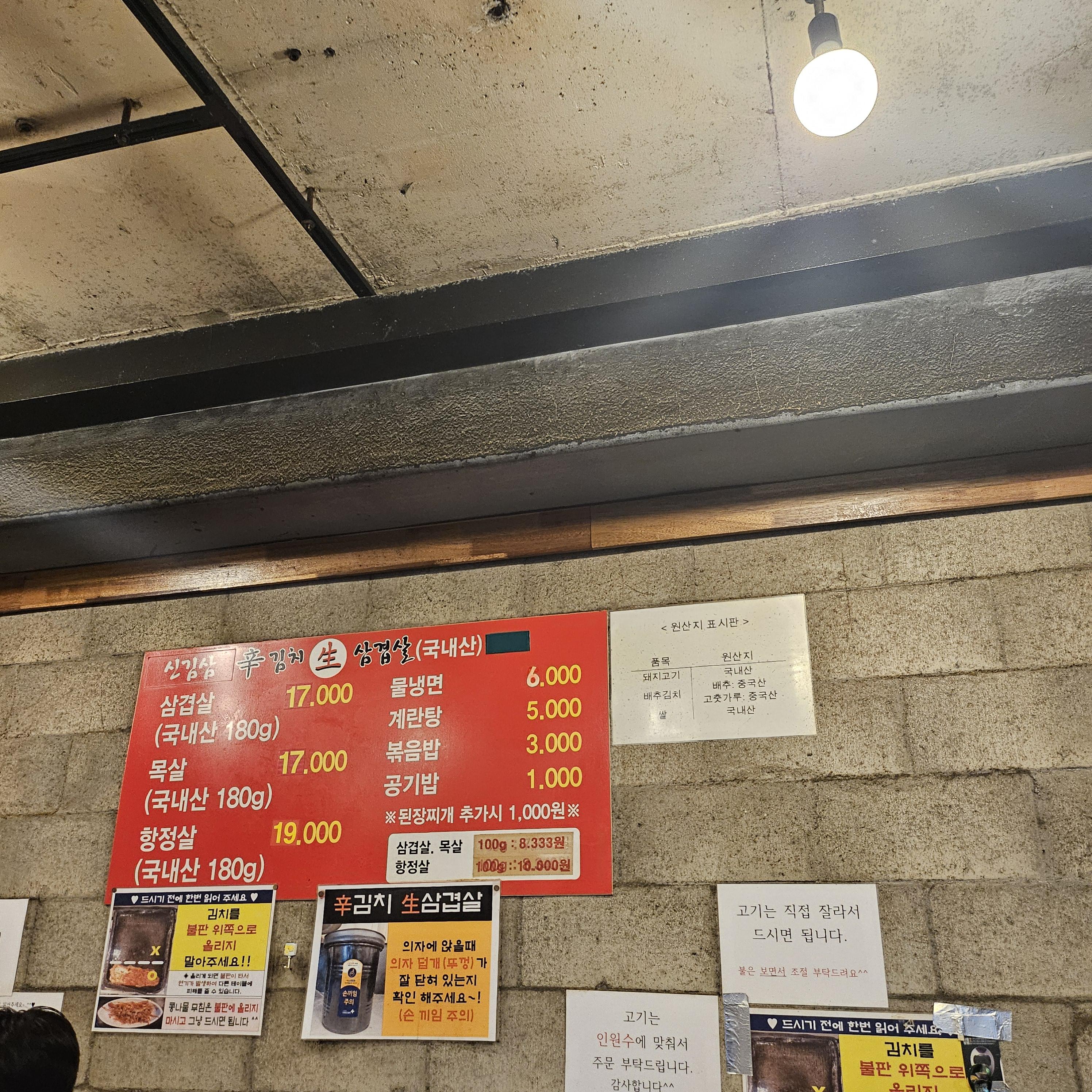 상호에 있는 신김치생삼겹살의 신김치는 새콤한 김치가 아니라 매울 신인데..