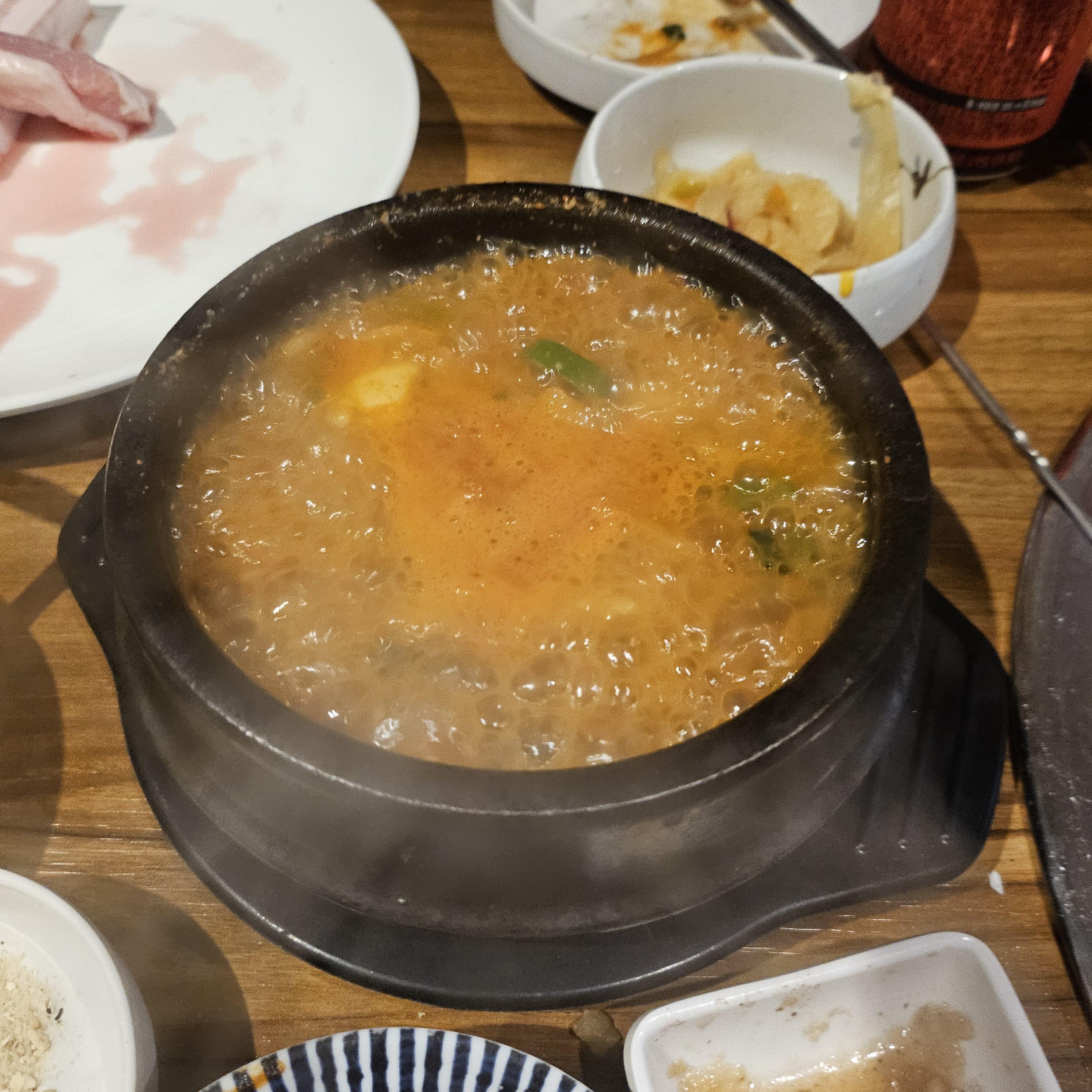 해물 베이스 된장찌개인데 고기가 들어갔다.. 도대체 왜..?