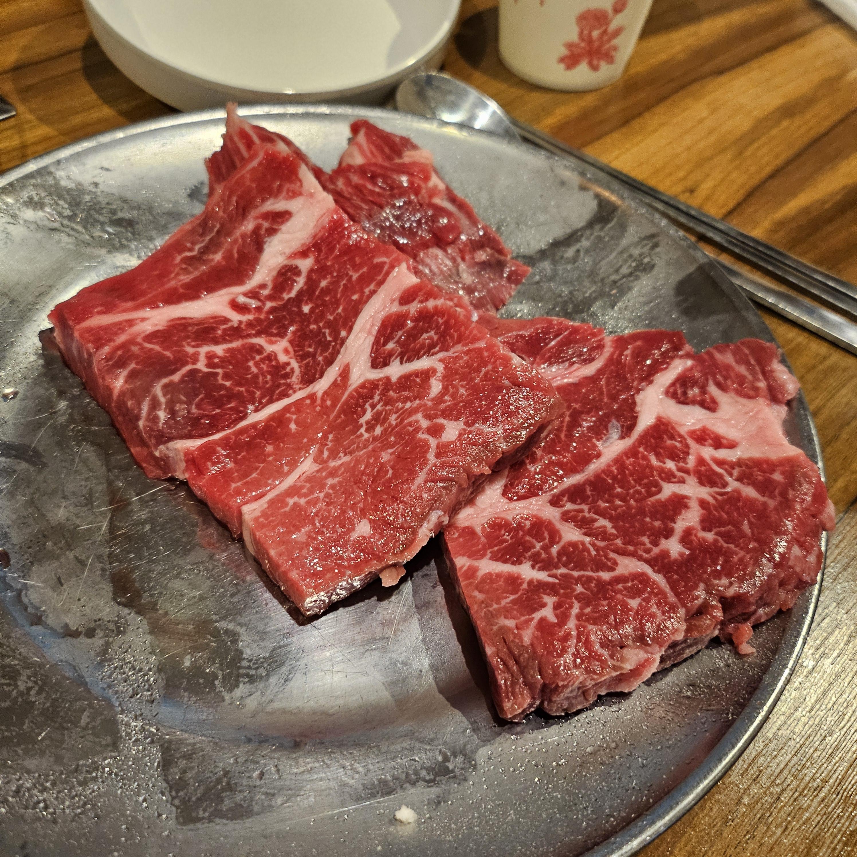 지난번에 근처에 있는 돼지고기 집을 갔었는데 돼지고기랑 그렇게 크게 차이나지 않는 가격.