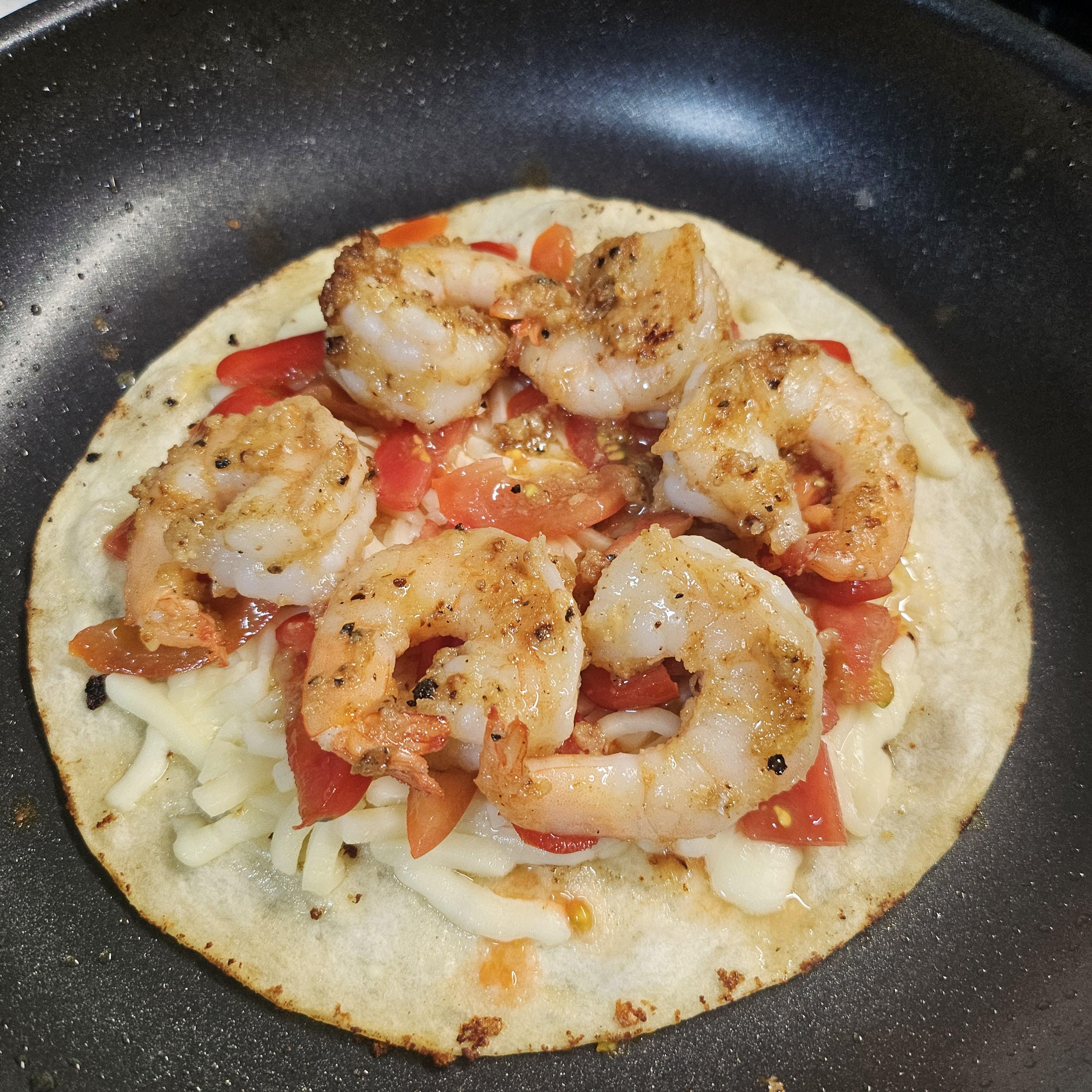 미리 썰어둔 새우를 넣고 볶아준다. 어느정도 갈색이 된 다진마늘은 새우에 들러붙기 시작한다. 버터새우에 갈릭이 달라붙으면 이것만으로도 극락임. 근데 이제 꿀이랑 피자도 만들어줄거니까 넘 좋음.