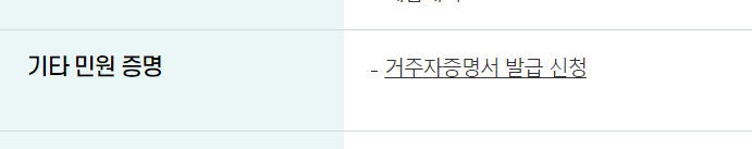 4. 기타민원증명에 있는 거주자증명서 발급 신청 클릭