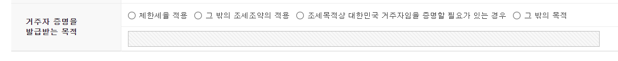 5. 거주자 증명을 발급받는 목적은 '조세목적상 대한민국 거주자임을 증명할 필요가 있는 경우' 클릭