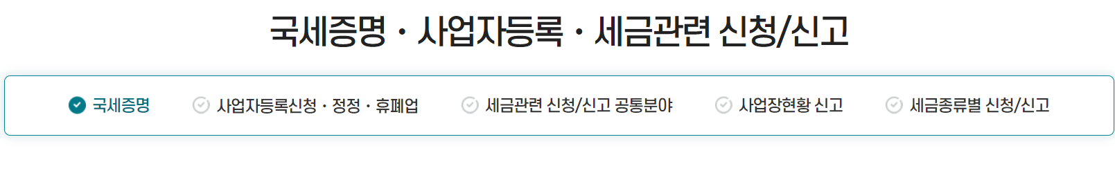 3. 가장 왼쪽에 있는 국세증명이 클릭된 상태에서 아래로 스크롤