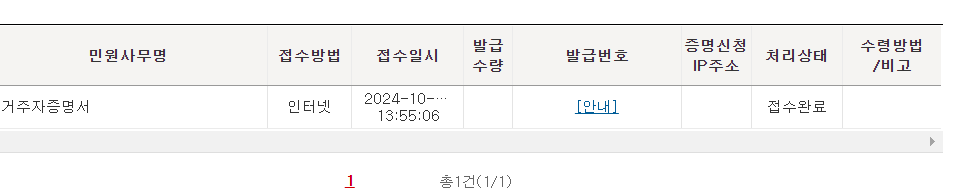 7. 신청을 마치면.. 며칠 뒤 발급 완료 문자가 온다. 그전까지는 나의 민원 신청 내역에서 아래와 같이 확인할 수 있음