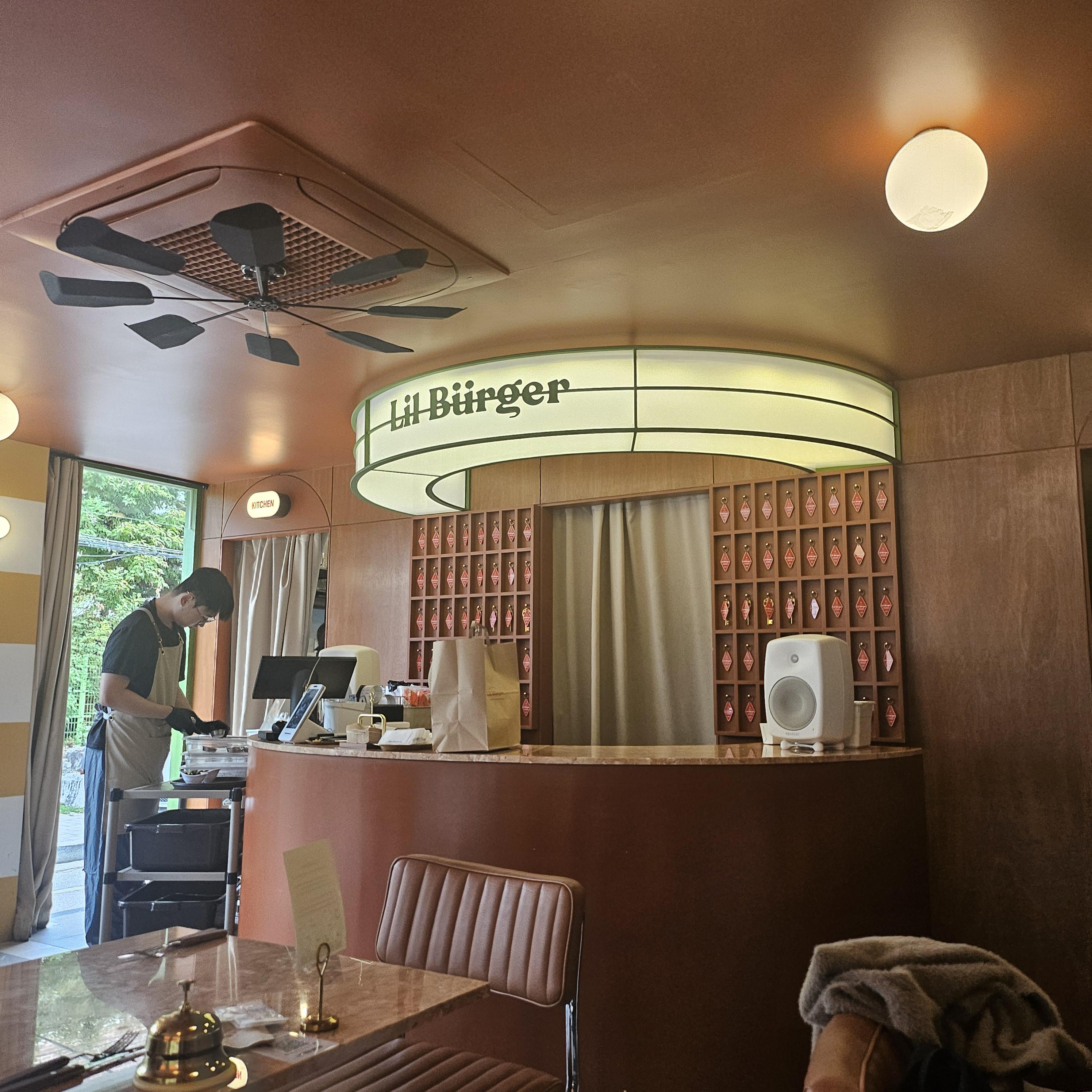 호텔 로비같은 느낌의 릴버거. 저기 안에는 가끔 사람이 왔다갔다 거린다.