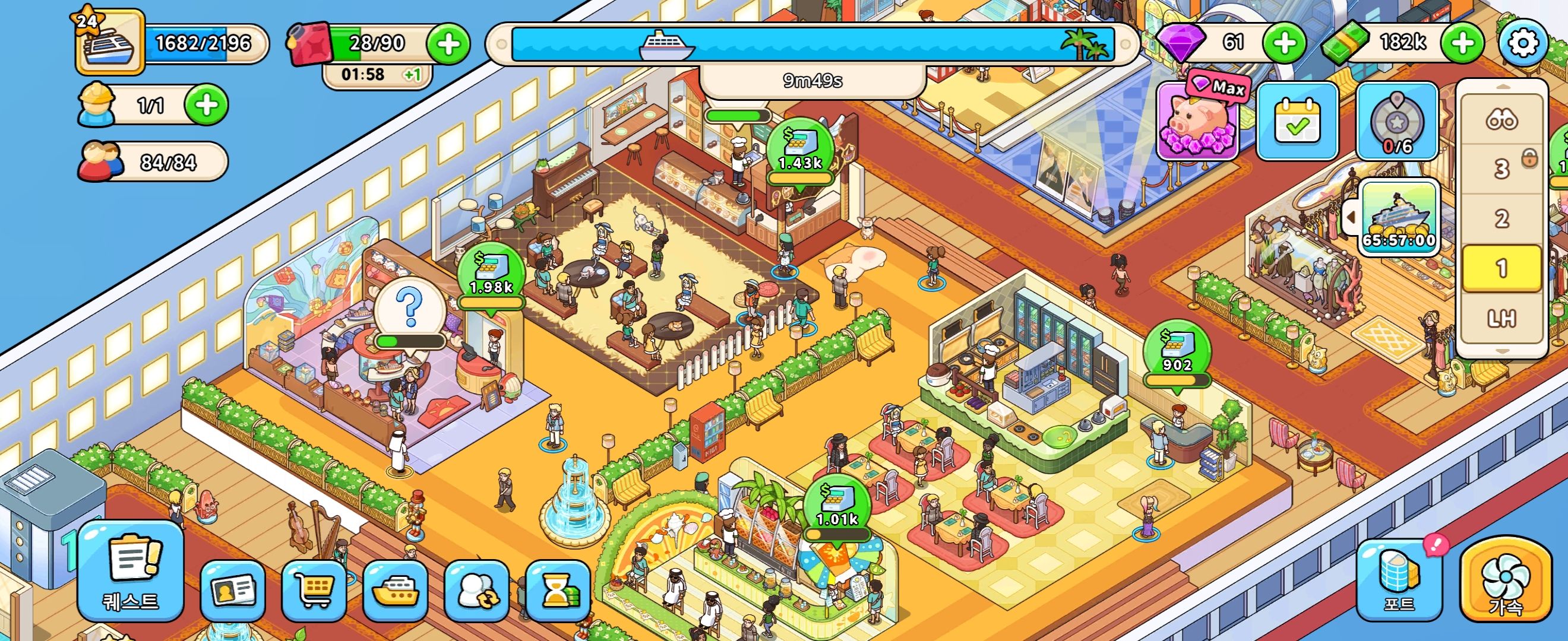 게임 방법은 굉장히 간단한 편이다. 그냥 배를 항해시키고 들어온 손님들이 이용할 수 있는 시설들을 추가해주면 된다.