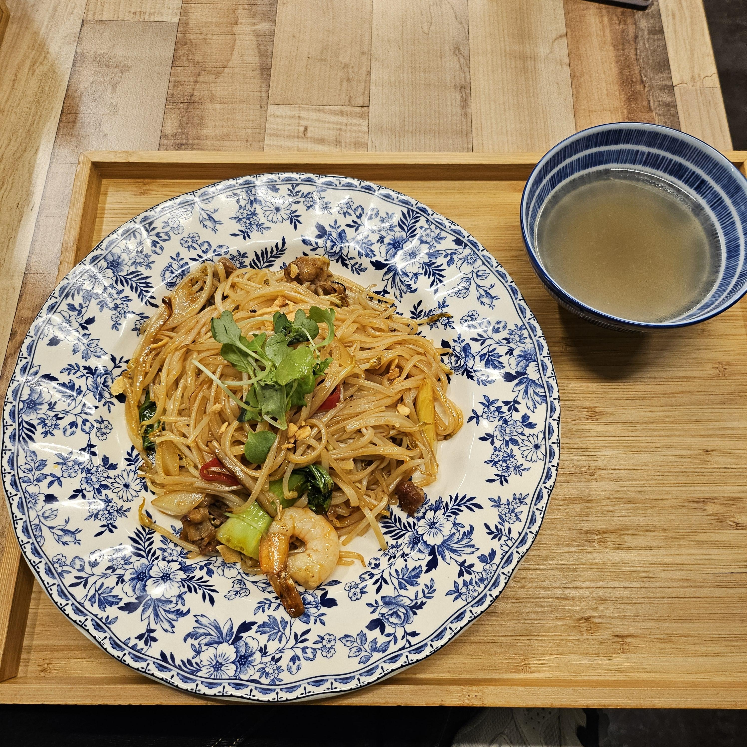 도착한 볶음면과 쌀국수국물.