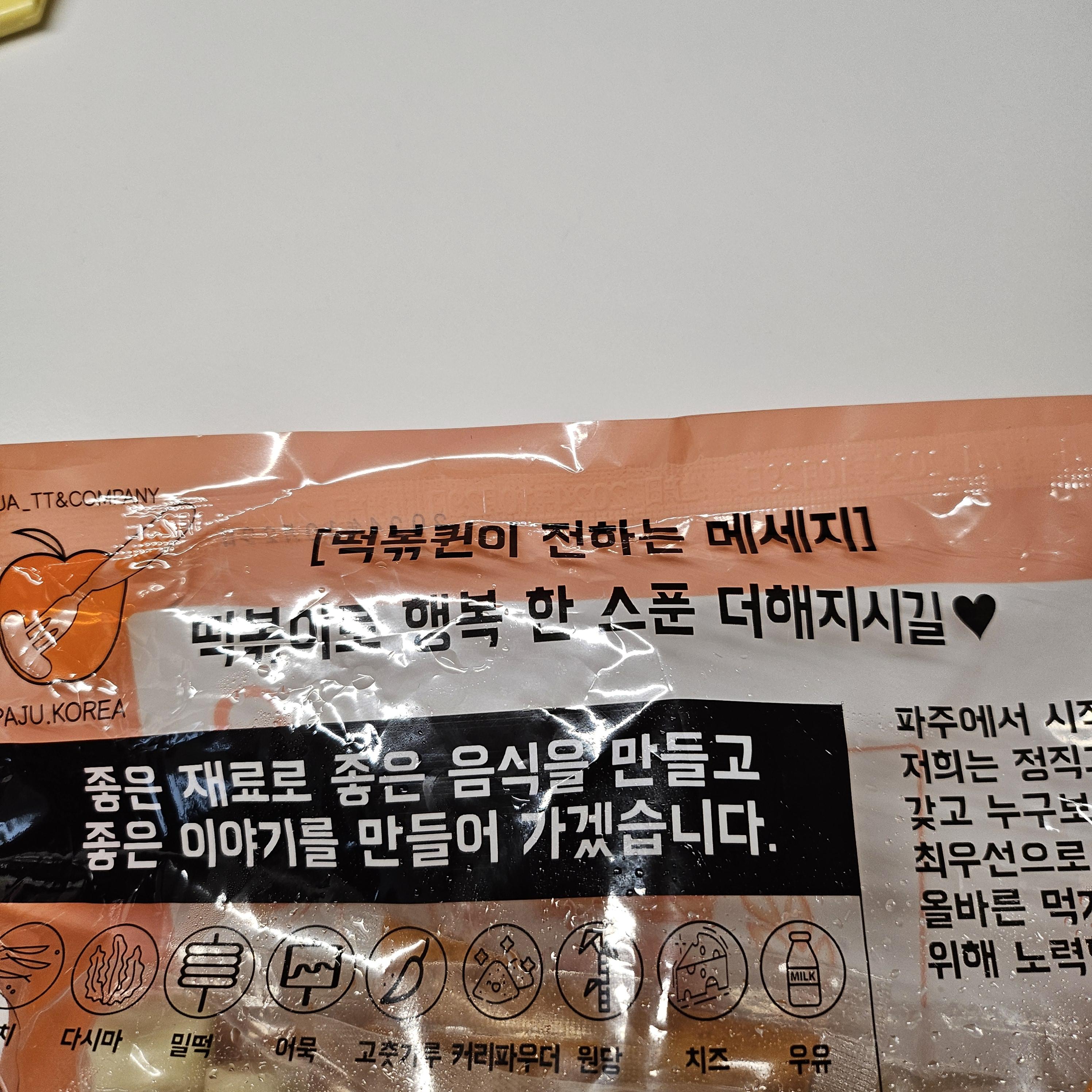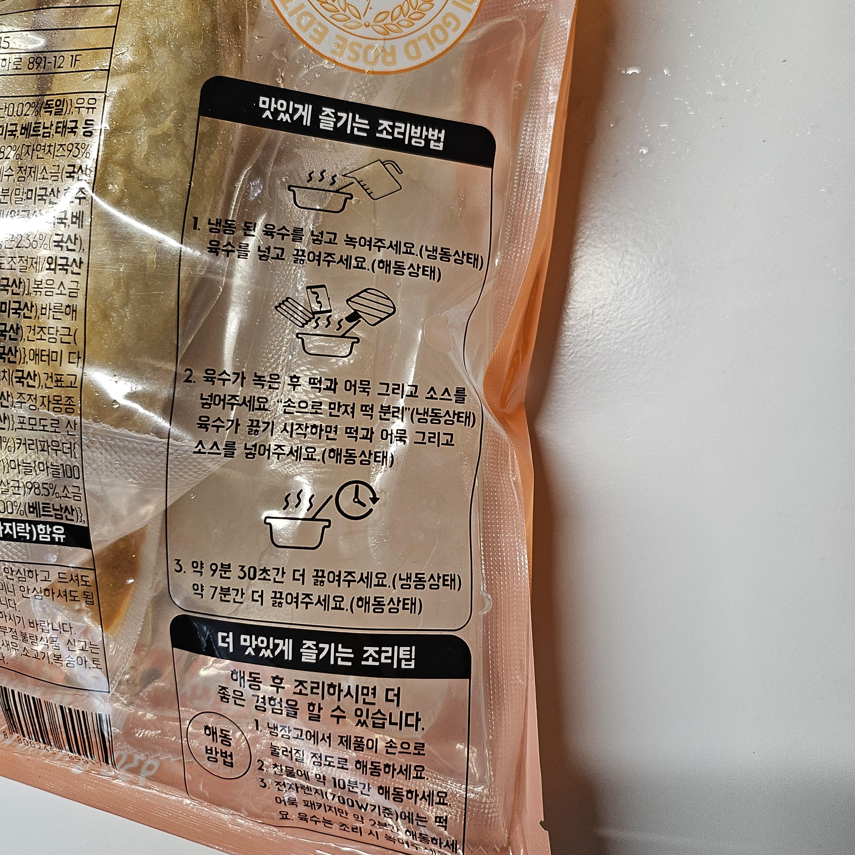 영상에서 봤던 그대로. 어묵과 떡이 함께 포장되어 있고 소스가 2봉지 들어있다.