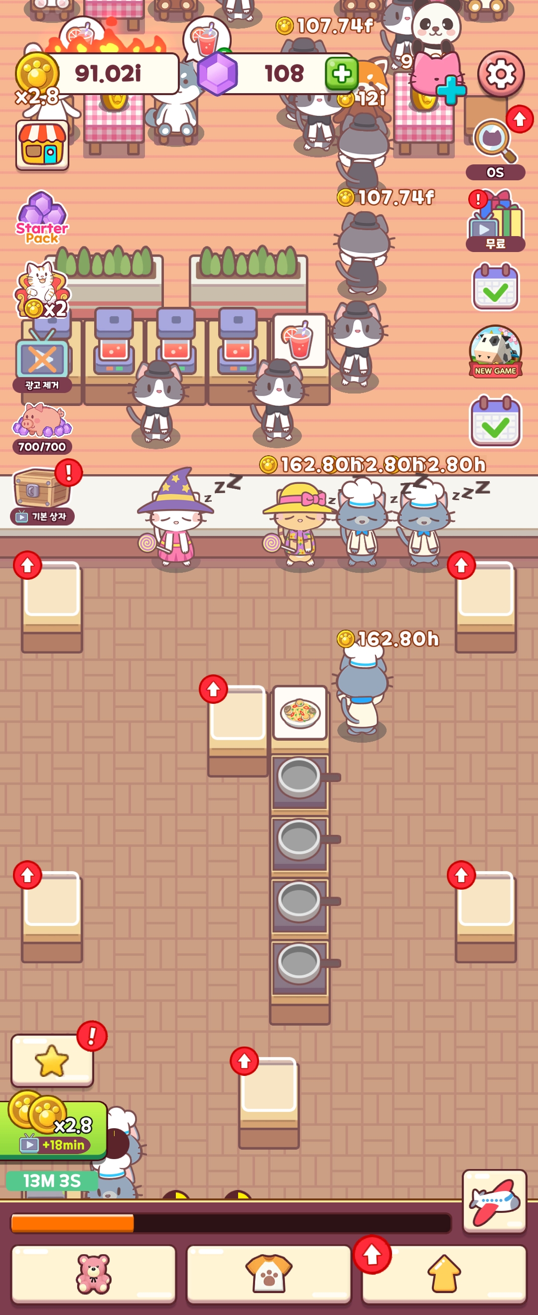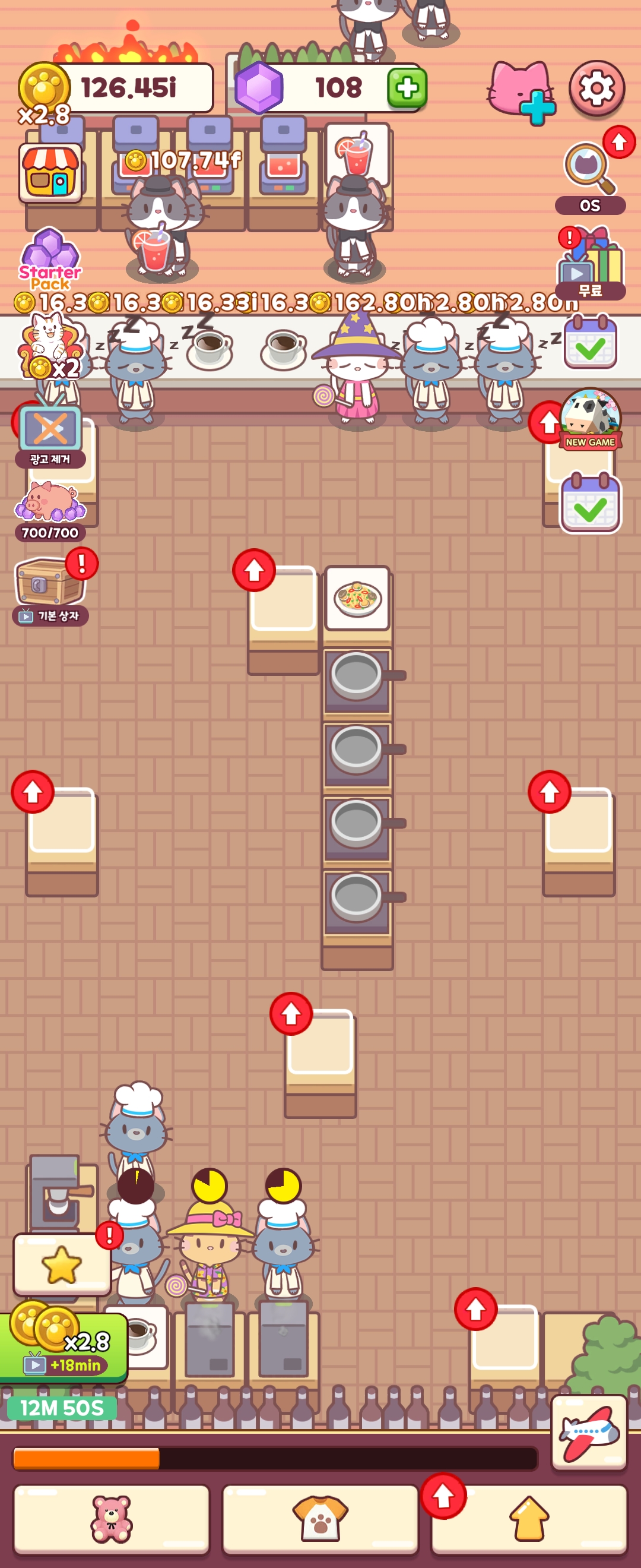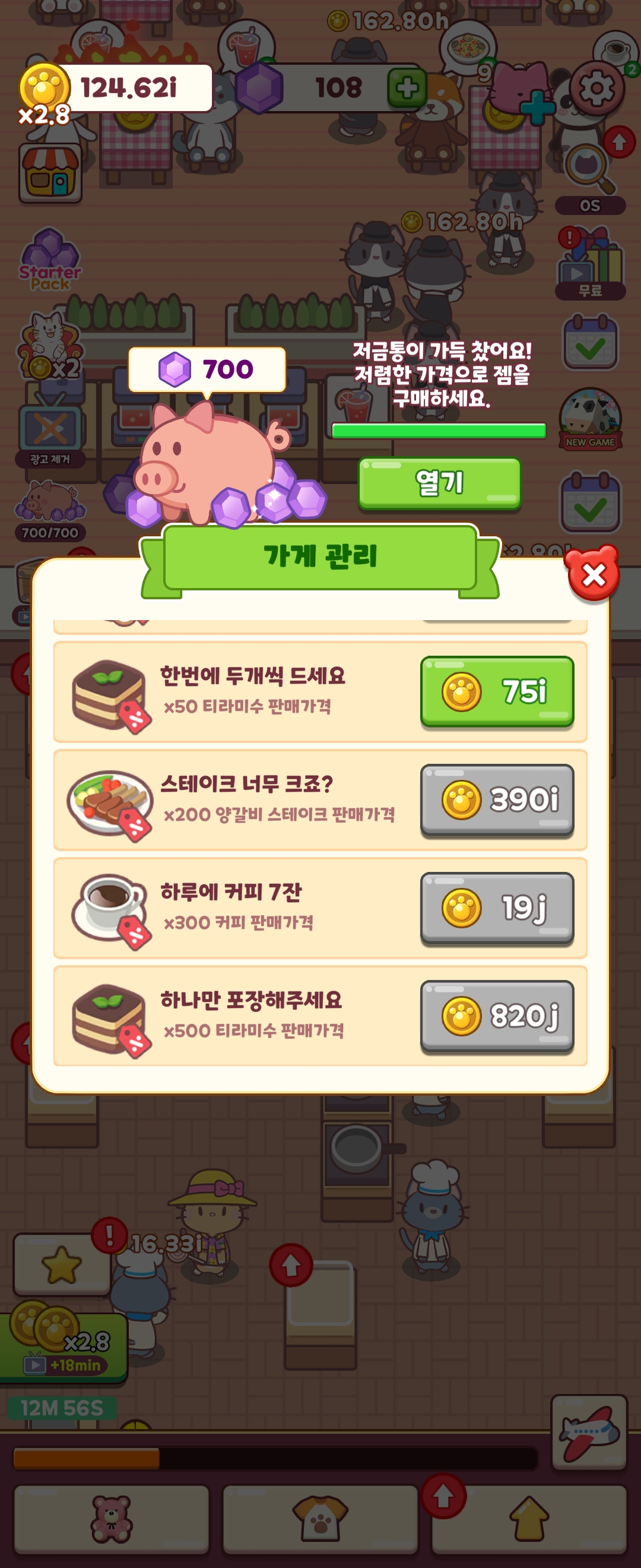 이렇게 번 돈은 가게 업그레이드에 쓴다. 그리고 가게의 모든 음식을 업그레이드하면 다음 스테이지로 넘어갈 수 있다.