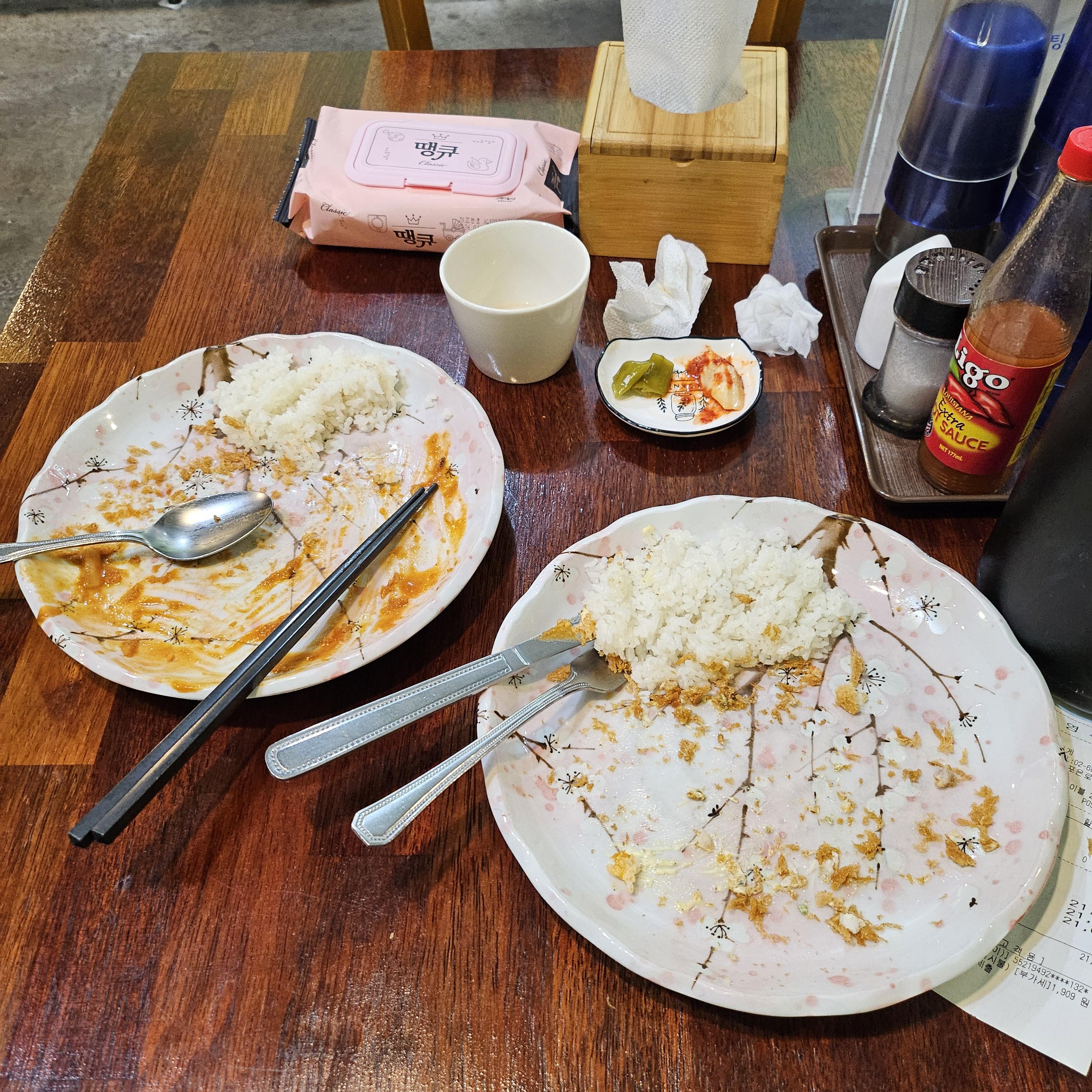 식사 도중 아주머니께서 "소스에 밥 비벼 먹으면 맛있어요"라고 친절하게 알려주셔서, 한번 시도해 봤습니다. 그 결과, 소스와 밥이 정말 잘 어울려서 밥 한 공기를 다 비워버렸습니다. 소스의 깊고 고소한 맛이 밥과 섞여 정말 맛있었어요. 이 소스에 밥을 비벼 먹는 방법은 정말 추천하고 싶은 팁입니다. 배가 부른데도, 그 맛을 놓칠 수 없어 결국 밥을 다 먹고 나왔습니다. 소스와 밥의 궁합이 최고였습니다.