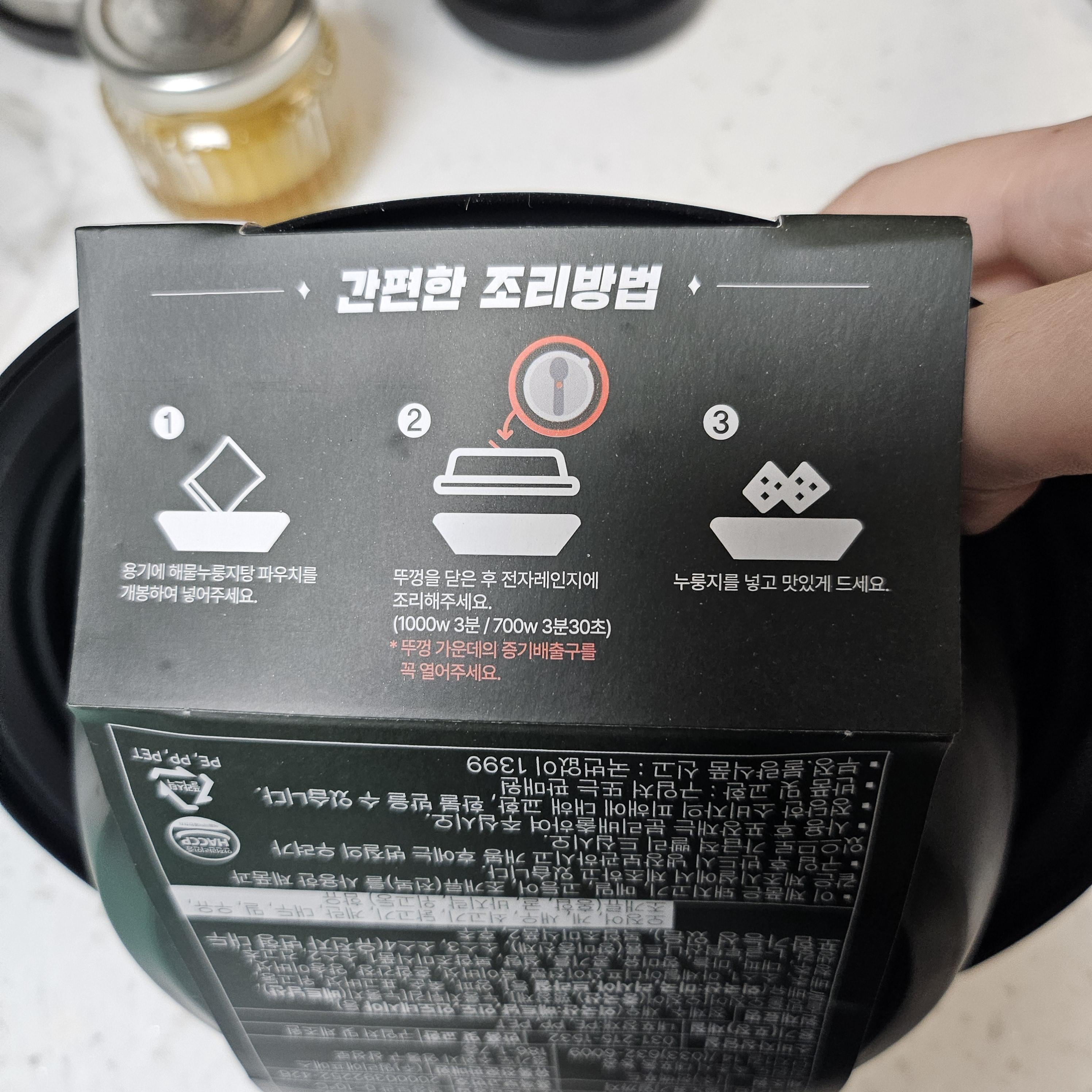 해물누룽지탕은 간편하게 조리할 수 있는 점이 가장 큰 매력이었습니다. 패키지 겉면에 간단한 조리 방법이 적혀 있었는데, 파우치를 용기에 담고 뚜껑을 닫은 뒤 증기배출구를 열고 전자레인지에 3분만 돌리면 끝이었어요. 조리가 너무 간단해서 "정말 이렇게 해서 맛이 나겠어?"라는 의구심이 들 정도였지만, 결과는 놀라웠습니다. 바쁜 현대인들이나 요리에 서툰 분들도 손쉽게 셰프의 요리를 즐길 수 있다는 점이 인상적이었어요. 살균 처리된 제품이라 안전하게 섭취할 수 있는 점도 신뢰를 더해줬습니다.