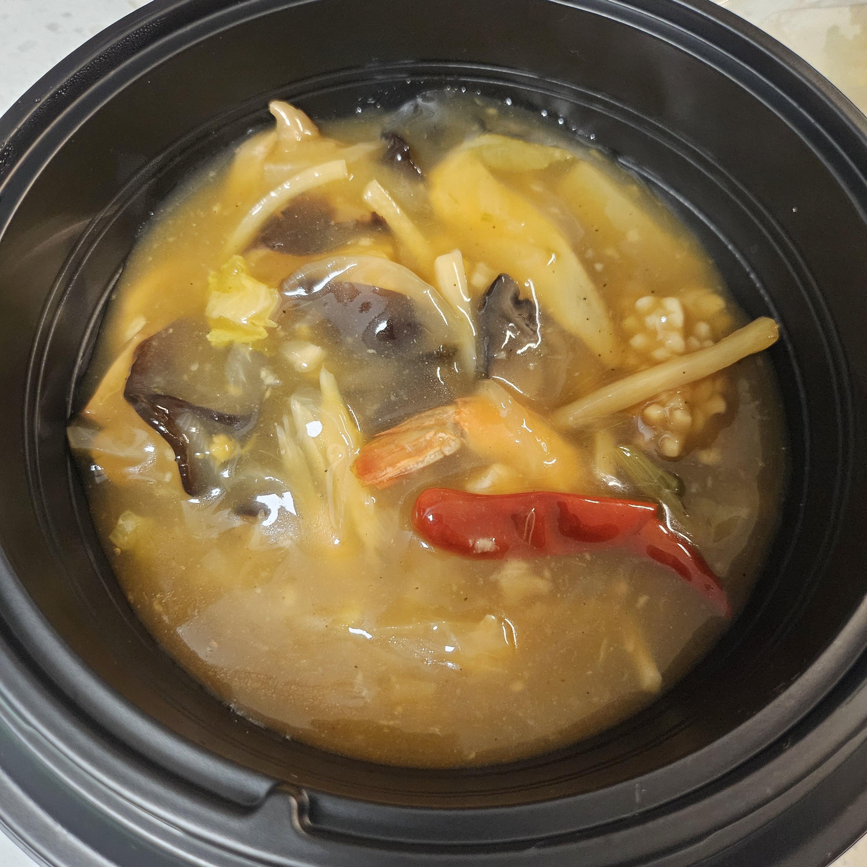 증기배출구를 통해 조리된 해물누룽지탕은 꺼내자마자 향긋한 냄새가 코끝을 찔렀습니다. 전분이 많이 들어간 듯 걸쭉한 국물이 보글보글 끓으며 먹음직스러운 비주얼을 완성했어요. 특히 누룽지를 넣는 마지막 과정에서 더욱 완벽해 보였는데요. 국물에 배어든 누룽지의 고소함이 한층 풍미를 더했습니다. 조리가 간단하지만, 그 맛은 레스토랑 요리에 뒤지지 않는 수준이었어요.