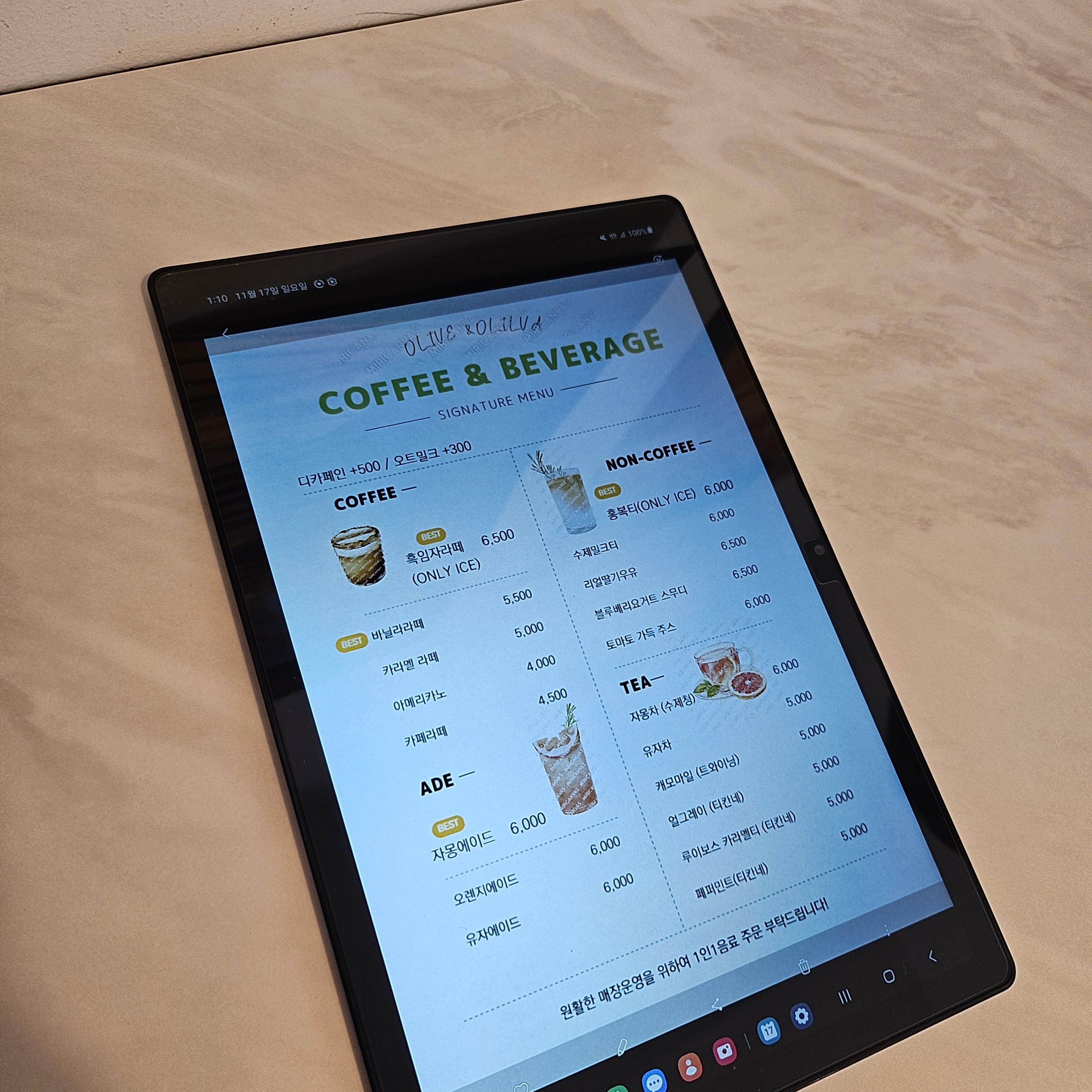 이곳은 태블릿으로 주문하는 방식을 채택하고 있습니다. 이로 인해 직원과의 불필요한 대화가 줄어들어 편리했고, 메뉴를 천천히 고민하며 주문할 수 있었습니다. 다만, 1인 1음료 주문이 필수라는 점은 참고하셔야 해요.
