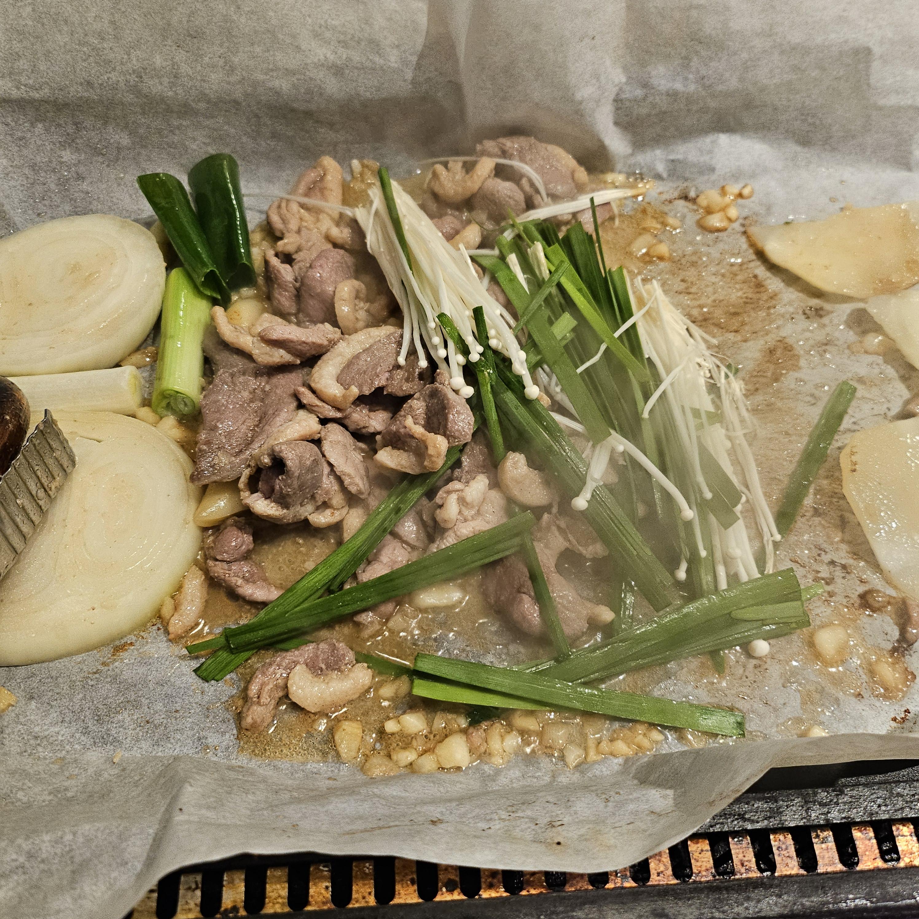 오리주물럭은 처음엔 조금 심심하다는 느낌이었지만, 시간이 지나 소스가 눌러붙으면서 그 진가를 발휘했어요. 눌러붙은 소스 덕분에 고기의 풍미가 더욱 살아나서 마지막 한 점까지 정말 맛있게 먹을 수 있었습니다. 주물럭의 양념이 강하지 않아 오리 본연의 맛을 잘 느낄 수 있었던 것도 좋았어요.