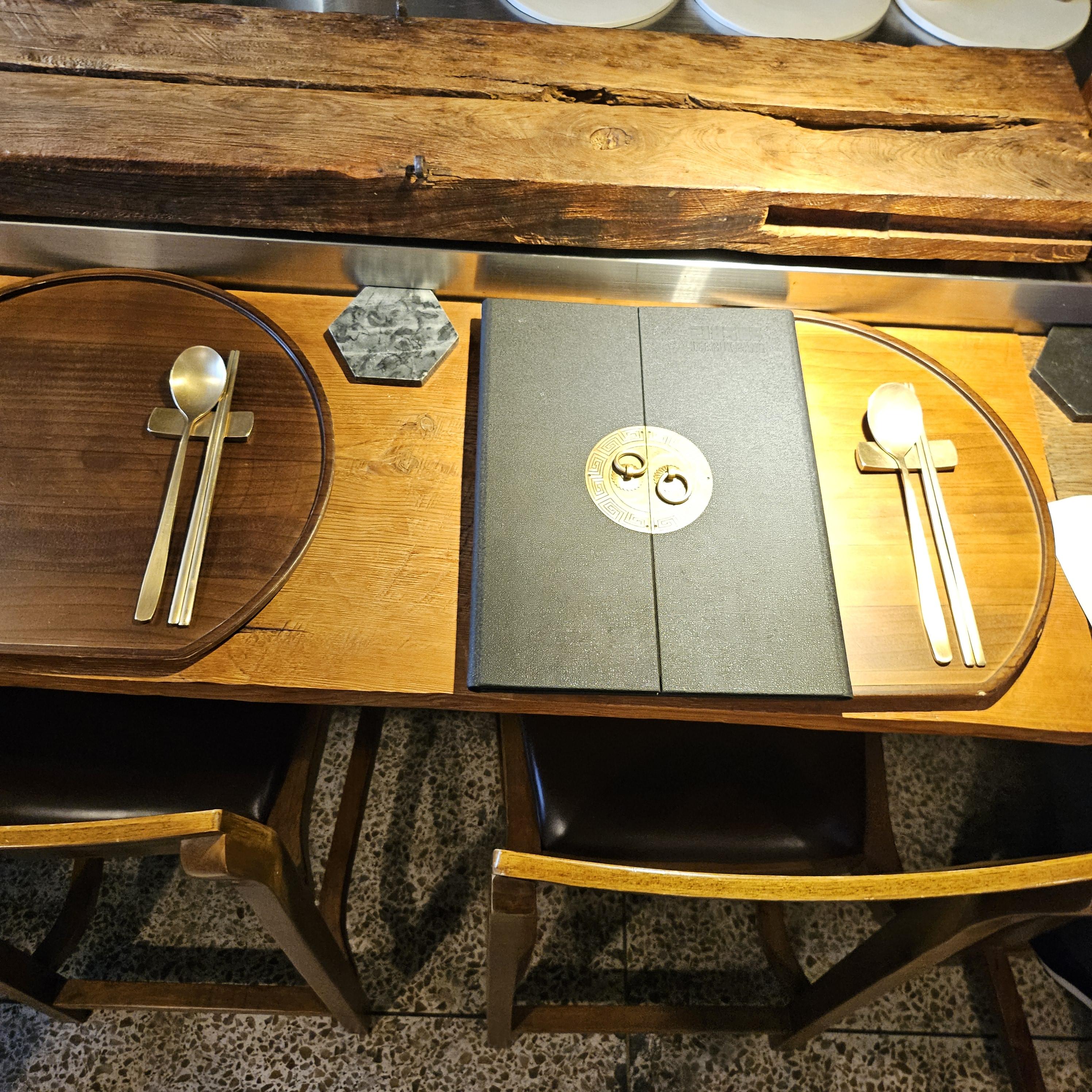 리북방의 분위기는 깔끔하면서도 현대적이었어요. 전체적으로 음식에 집중할 수 있는 환경이었고, 한옥의 멋을 살린 인테리어가 독특한 매력을 더했답니다. 다만, 저희가 갔을 때 단체 손님들이 많아 조금 시끄러운 점은 아쉬웠어요. 전체 좌석은 약 10석 정도로 아늑한 느낌을 주었답니다.