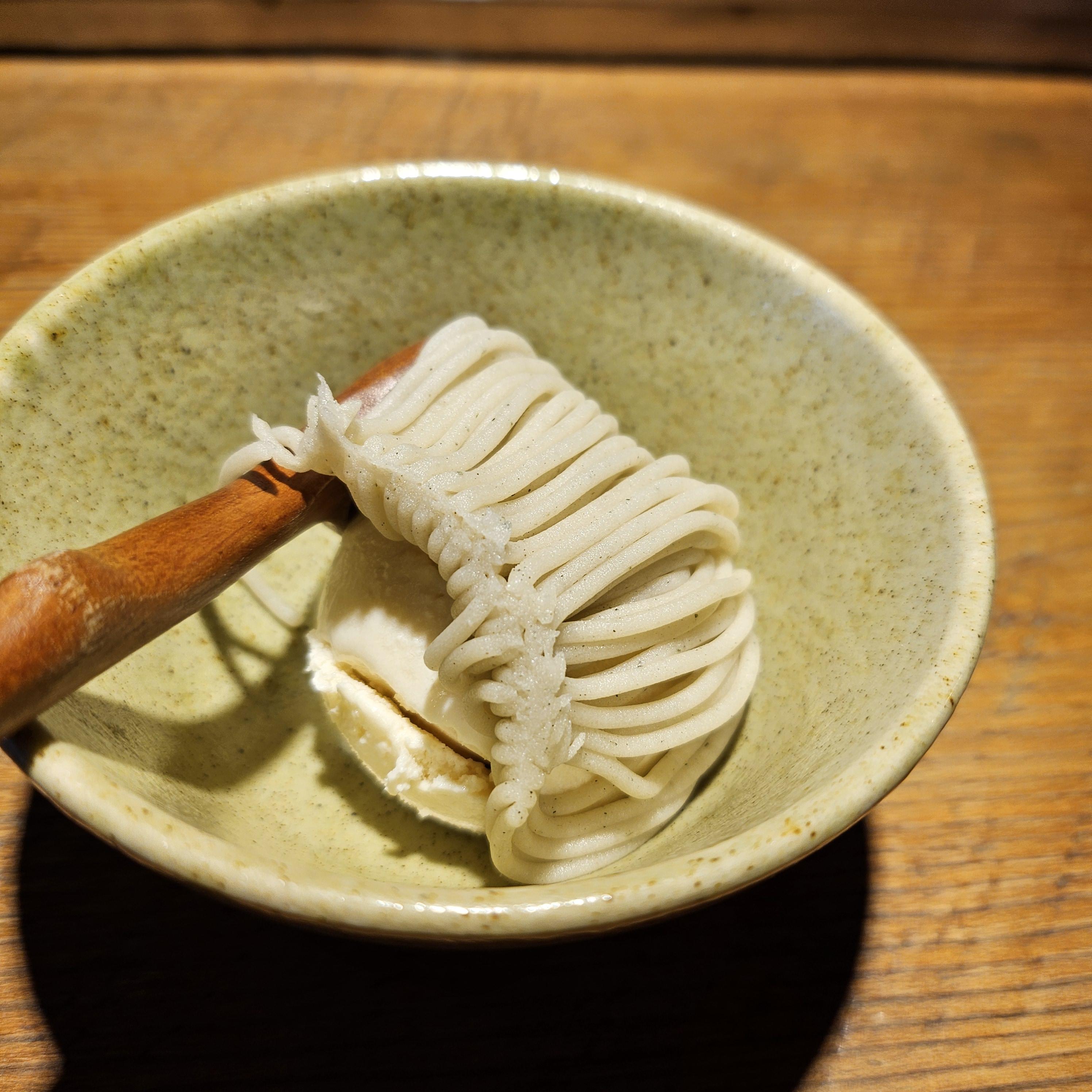 마무리로 제공된 디저트는 앙금을 올린 아이스크림이었어요. 앙금을 면처럼 짜주어 재미있게 먹을 수 있었고, 간이 하나는 달콤하고 하나는 심심해서 함께 떠먹으면 아주 부드러운 맛이었답니다. 디저트로 마무리하는 이 경험은 정말 즐거웠어요!