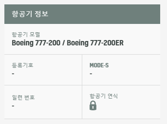아래쪽으로 내려보면 항공기 정보, 항공기 모델명이 나오는데요.