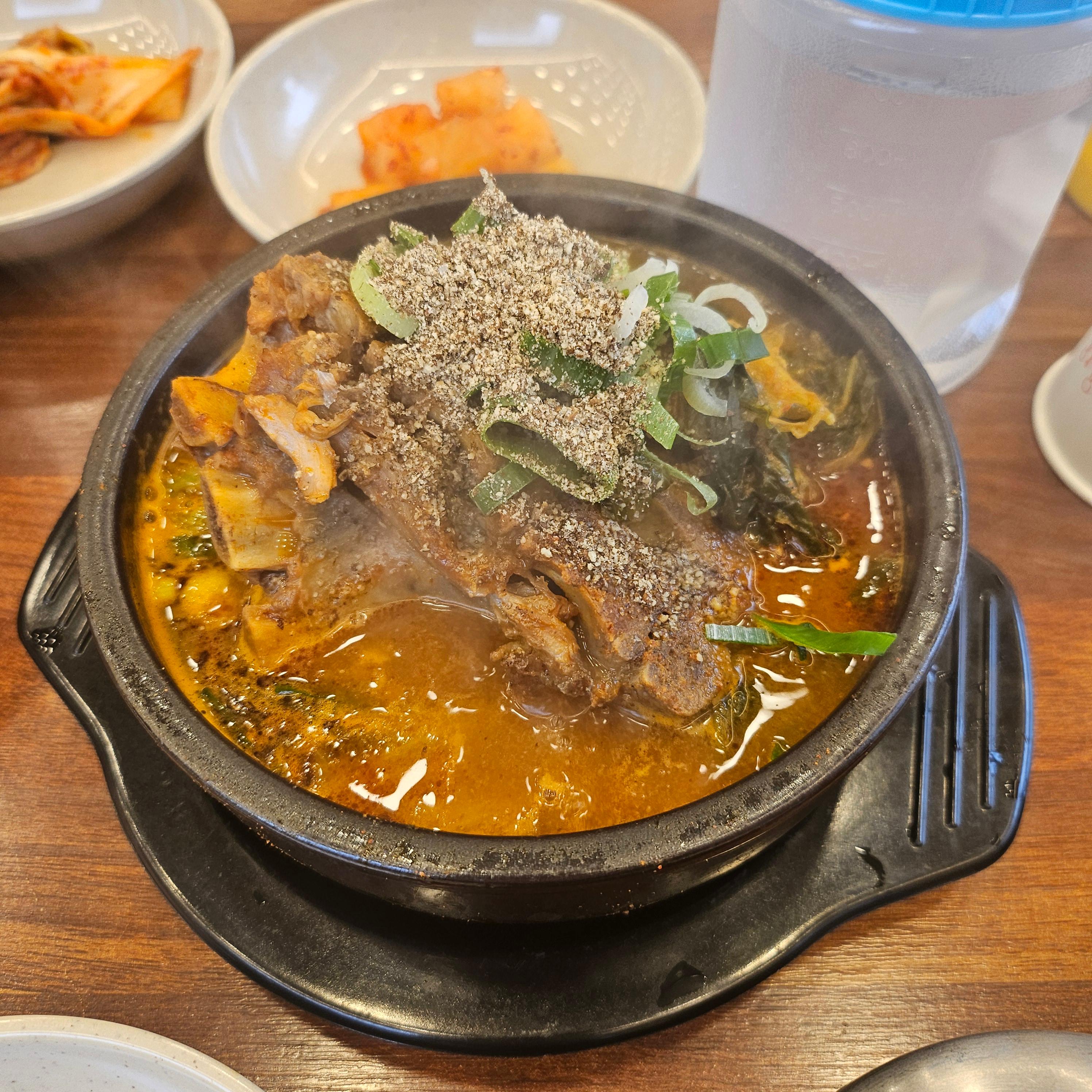 제가 주문한 메뉴는 바로 뼈해장국이에요. 가격은 10,000원으로 적당한 편이에요. 뼈해장국이 나오자마자 풍기는 진한 향이 정말 기대감을 높였답니다. 뜨거운 국물을 한 숟갈 떠먹어보니 너무 짜지도, 맵지도 않은 딱 적당한 맛이었어요. 자극적이지 않아 국물 본연의 깊은 맛을 느낄 수 있었답니다.