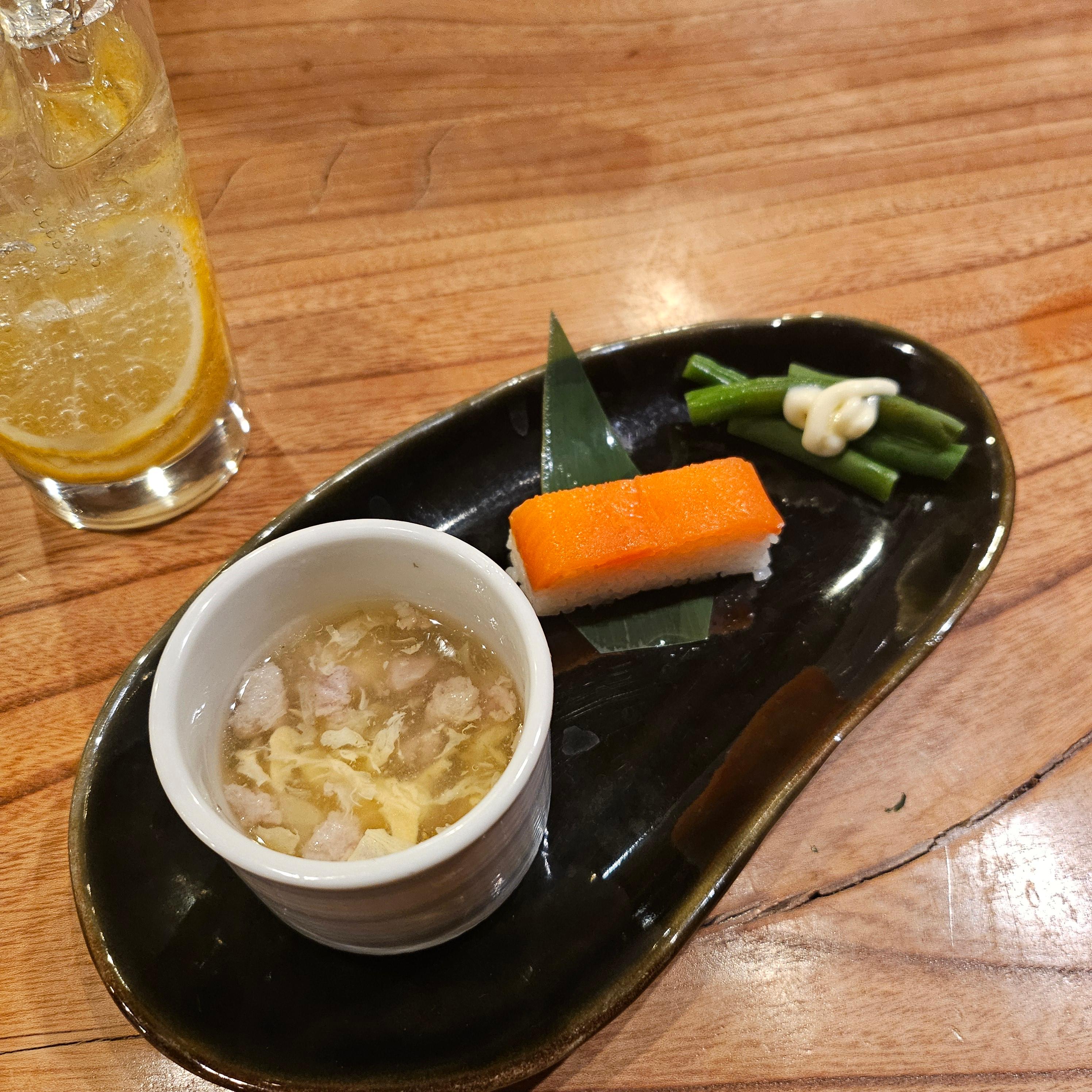 처음 나온 오토시로 게살스프 같은 요리가 제공되었는데, 정말 부드럽고 깊은 맛이 느껴졌어요. 일본에서는 이렇게 식전 요리를 제공하는 문화가 있는데, 그 시작부터 완벽했답니다.