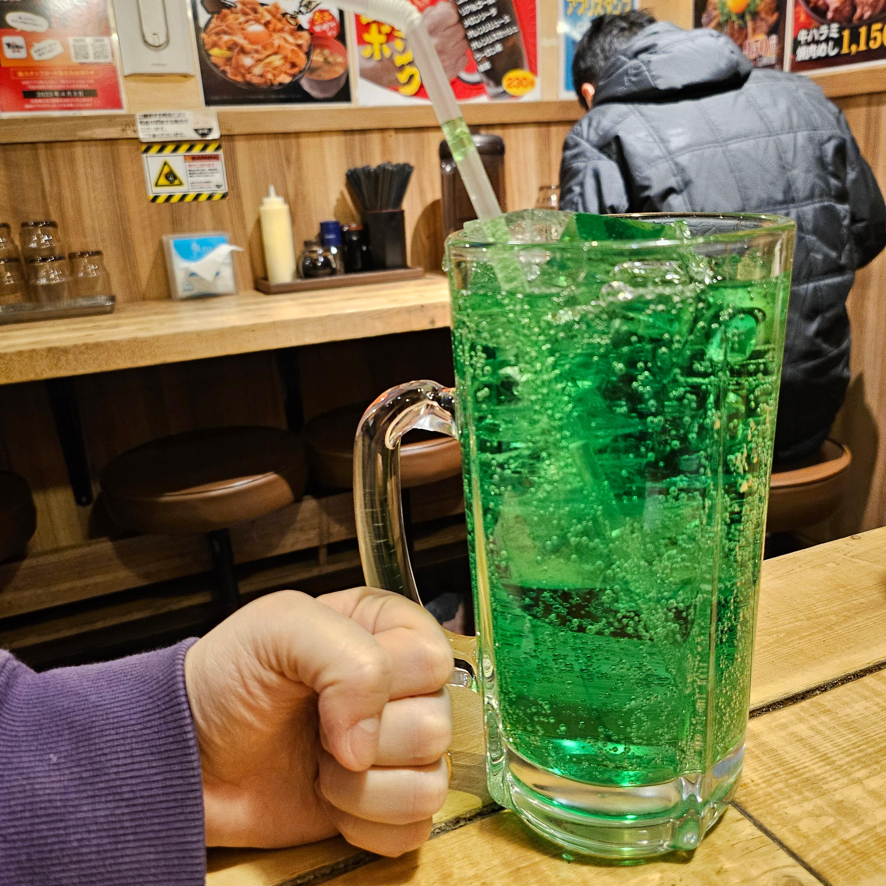 ✔️ 메론소다 – 크기가 어마어마하게 큼. 일반적인 사이즈가 아니라서 한 잔만 시켜도 충분히 시원하게 즐길 수 있어요! 🥤💚