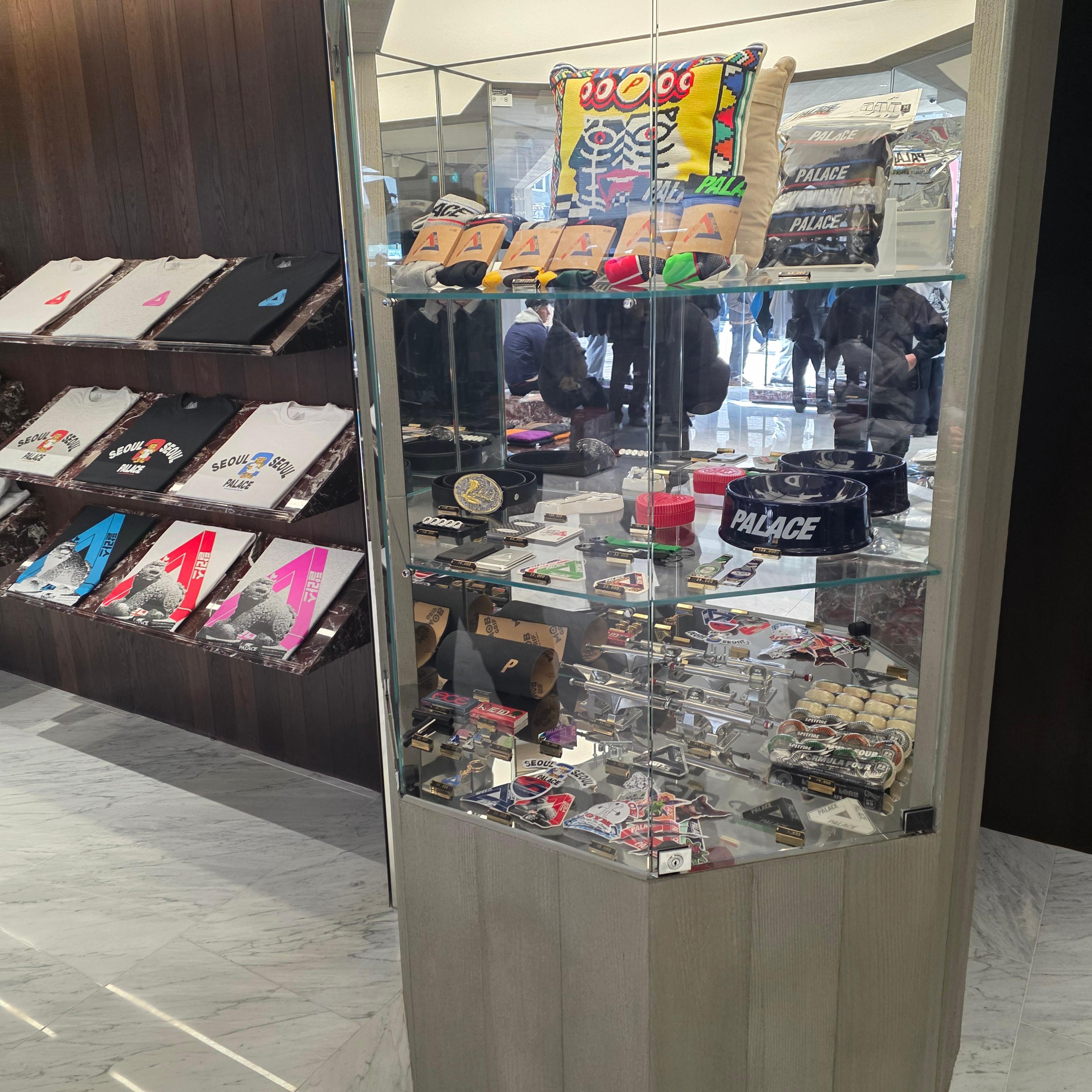 매장에 들어서면 생각보다 아담한 크기지만, 브랜드 특유의 감성이 확실하게 느껴졌어요. 벽면에는 팔라스 로고와 감각적인 디스플레이가 배치되어 있고, 다양한 제품들이 깔끔하게 정리되어 있어 쇼핑하기 편리했어요. 팔라스는 트렌디하면서도 개성 있는 디자인이 많아서 스트릿 브랜드를 좋아하는 분들에게 특히 인기가 많죠. 익클 제품들도 다양하게 있었고, 인기 제품들이 빠르게 소진되는 모습도 볼 수 있었어요. 팔라스답게 스트릿 무드를 그대로 살린 인테리어도 멋졌어요. 매장 자체는 크지 않지만, 공간 활용이 잘 되어 있어서 여러 제품을 한눈에 볼 수 있는 점이 좋았어요.