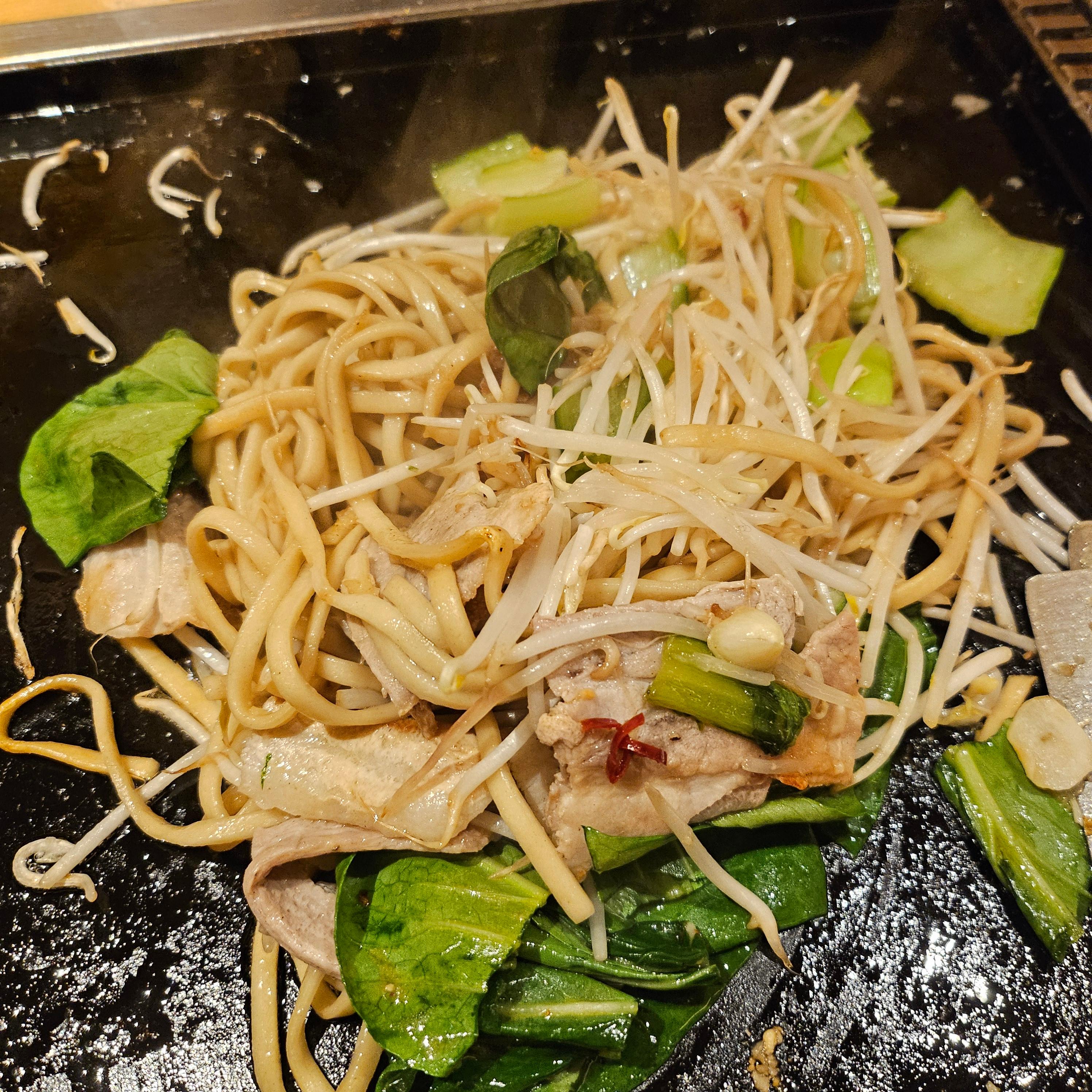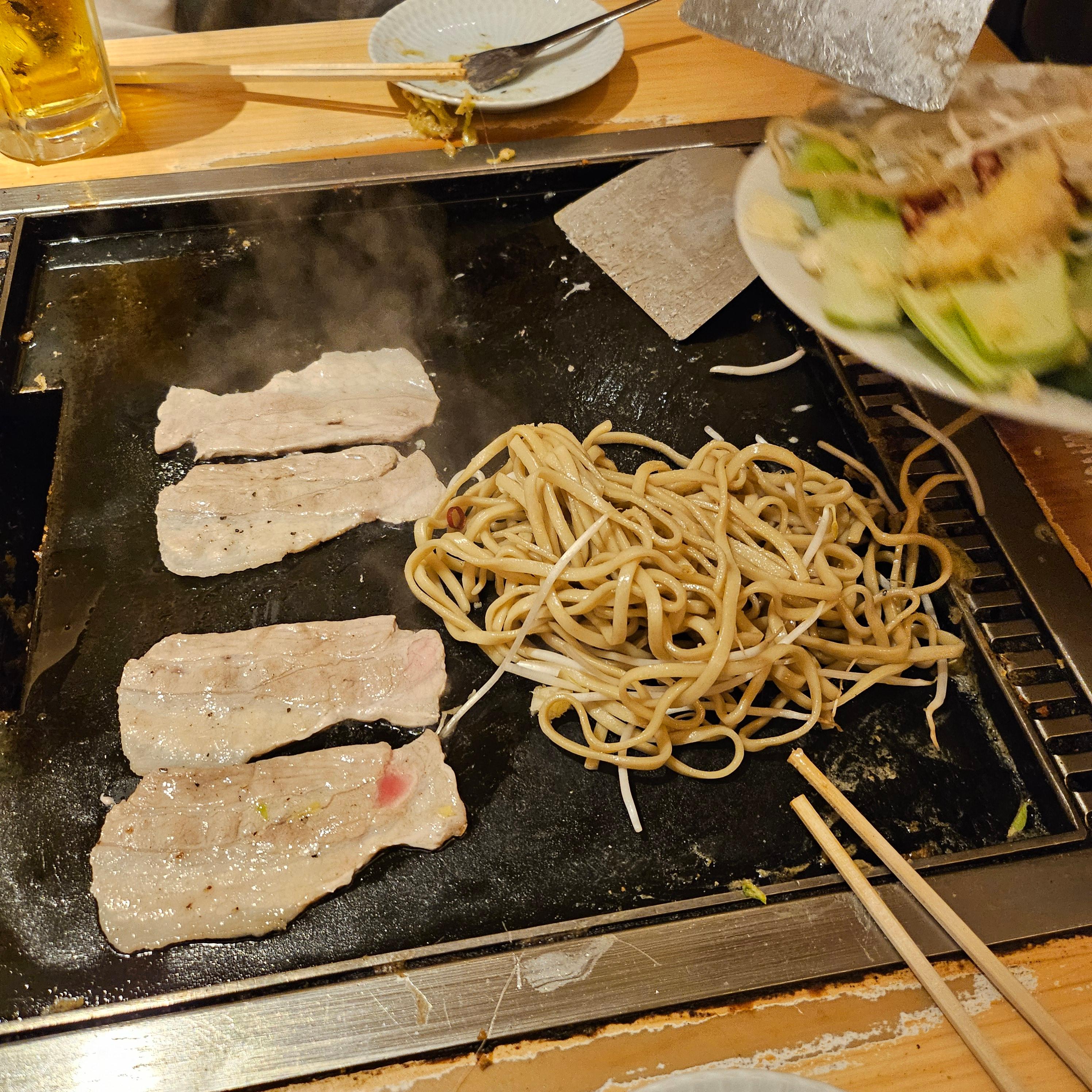 몬자야끼가 기대 이상으로 맛있었던 것과는 다르게, 야끼소바는 제가 원래 알고 있던 그 맛이 아니었어요. 면이 조금 더 꼬들꼬들한 스타일일 줄 알았는데, 생각보다 식감이 부드러웠어요. 그리고 소스 맛이 제 입맛에는 조금 애매했달까요? 물론 개인적인 취향 차이가 있겠지만, 솔직히 몬자야끼를 먹고 나니까 야끼소바는 살짝 아쉽게 느껴졌어요.