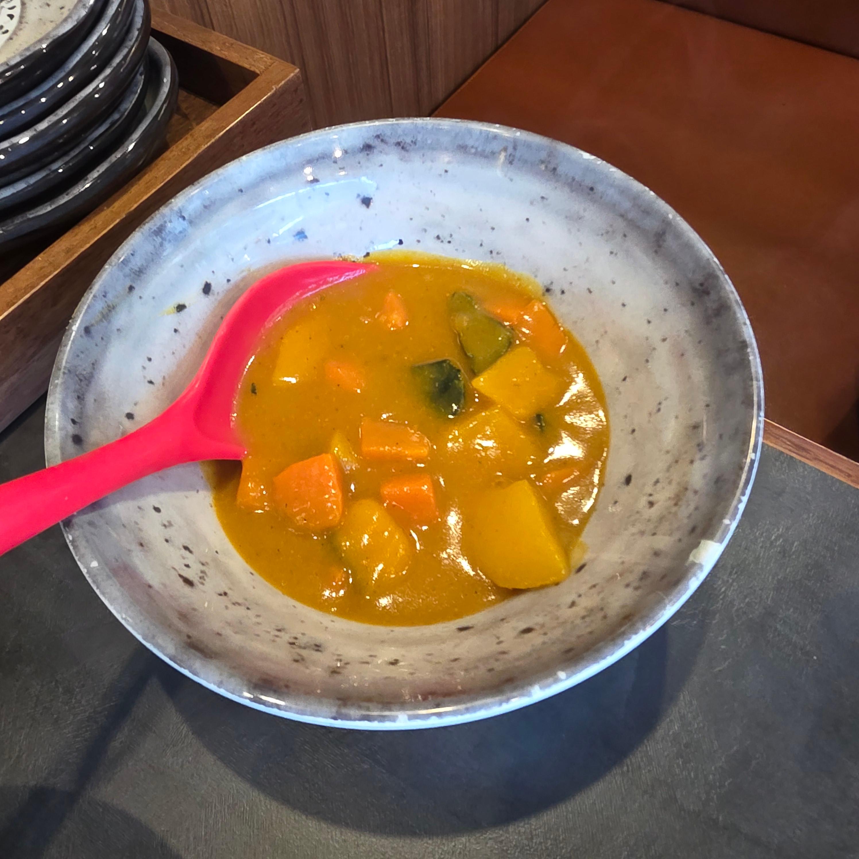 그리고 이 집의 진짜 꿀팁! 카레는 따로 말해야 나옵니다! 메뉴판에는 따로 적혀있지 않지만 “혹시 카레도 되나요?”라고 여쭤보니 직원분께서 “네~ 드릴게요” 하고 바로 챙겨주시더라고요. 카레는 자극적이지 않고 순한 맛이라서, 반찬 위에 살짝 곁들이거나 밥 한쪽에 따로 비벼 먹기 딱이에요. 국물 위주의 식사에 입맛이 조금 심심하다면, 카레 한 스푼으로 맛의 중심을 살짝 바꿔줄 수 있어요. 이건 진짜 알고 가는 사람만 먹을 수 있는 보너스 메뉴 같아서, 다음에 또 방문할 땐 무조건 요청하려고요 :)