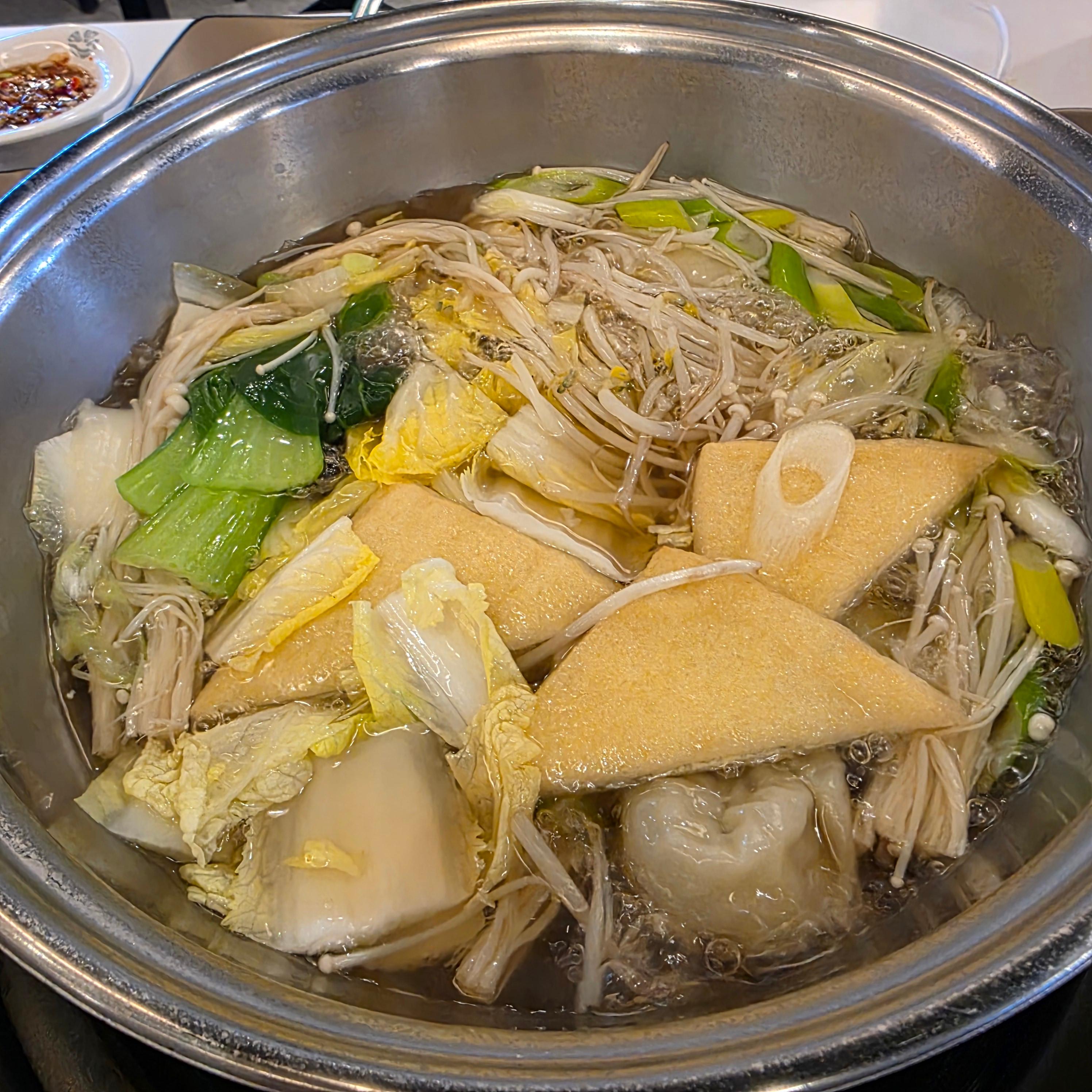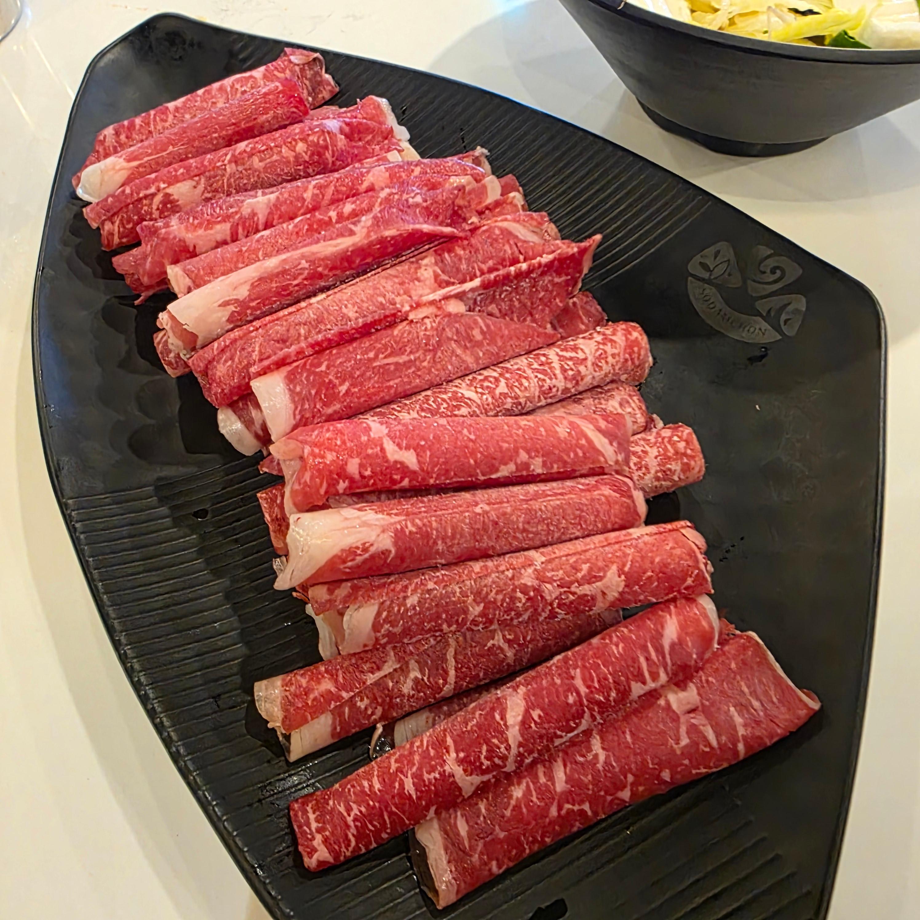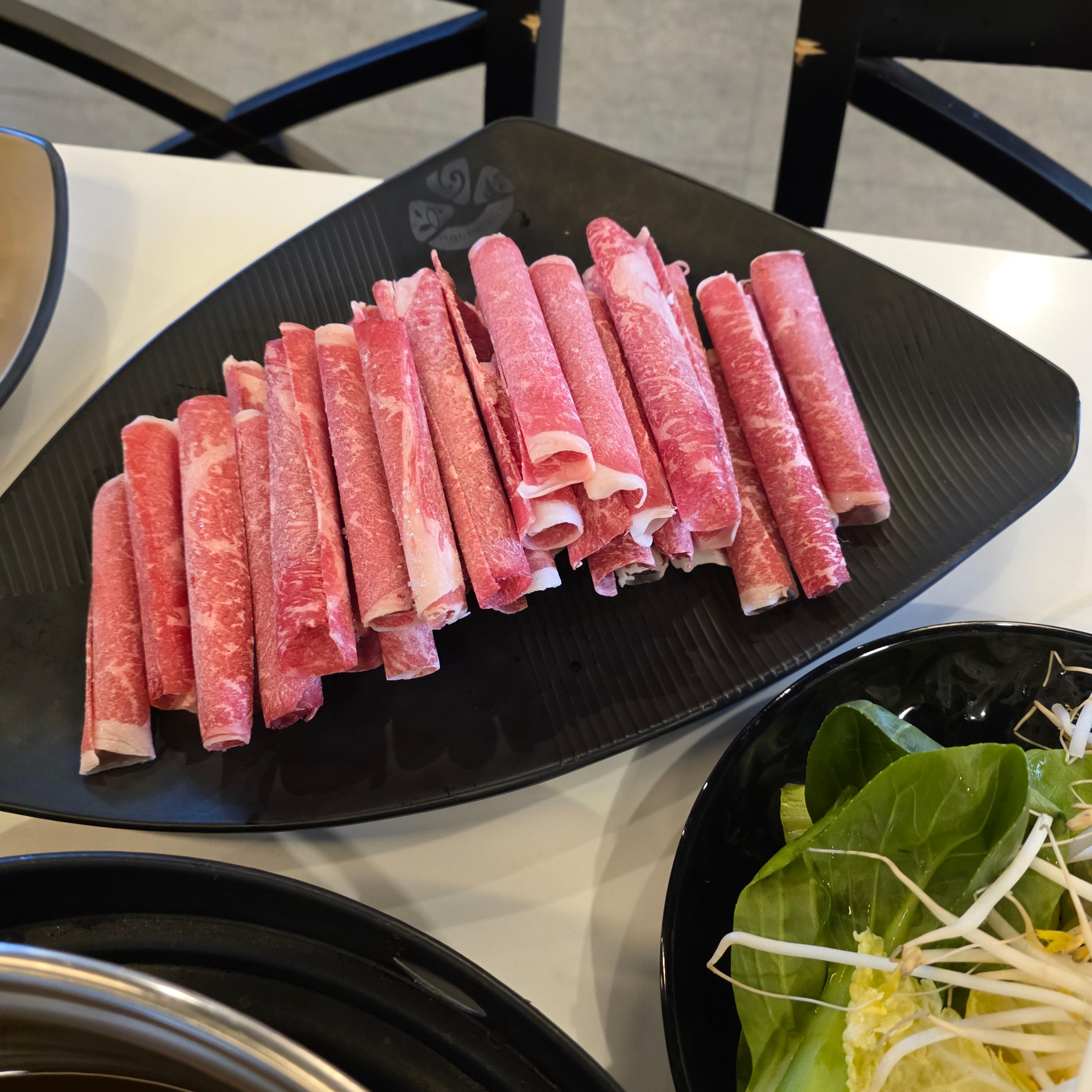 제가 선택한 메뉴는 와규샤브 기준 1인분 120g, 가격은 21,000원이었어요. 가격만 보면 살짝 고민할 수 있지만, 고기 질이 정말 좋아서 전혀 아깝지 않았어요. 기름기 많은 부위가 아니라 적당히 마블링이 들어간 부드러운 와규였고, 샤브샤브용으로는 딱이었어요. 순한맛 육수에 고기 넣고 살짝 익힌 뒤, 새콤달콤한 월남쌈에 싸먹으면... 말 그대로 “행복한 한 입”이 완성됩니다. 고기는 추가로 주문도 가능하고, 육수는 순한맛, 매운맛, 반반, 마라맛까지 취향대로 선택 가능해요. 저는 순한맛 선택했는데, 은은한 멸치베이스에 부담 없어 딱 좋았어요.
