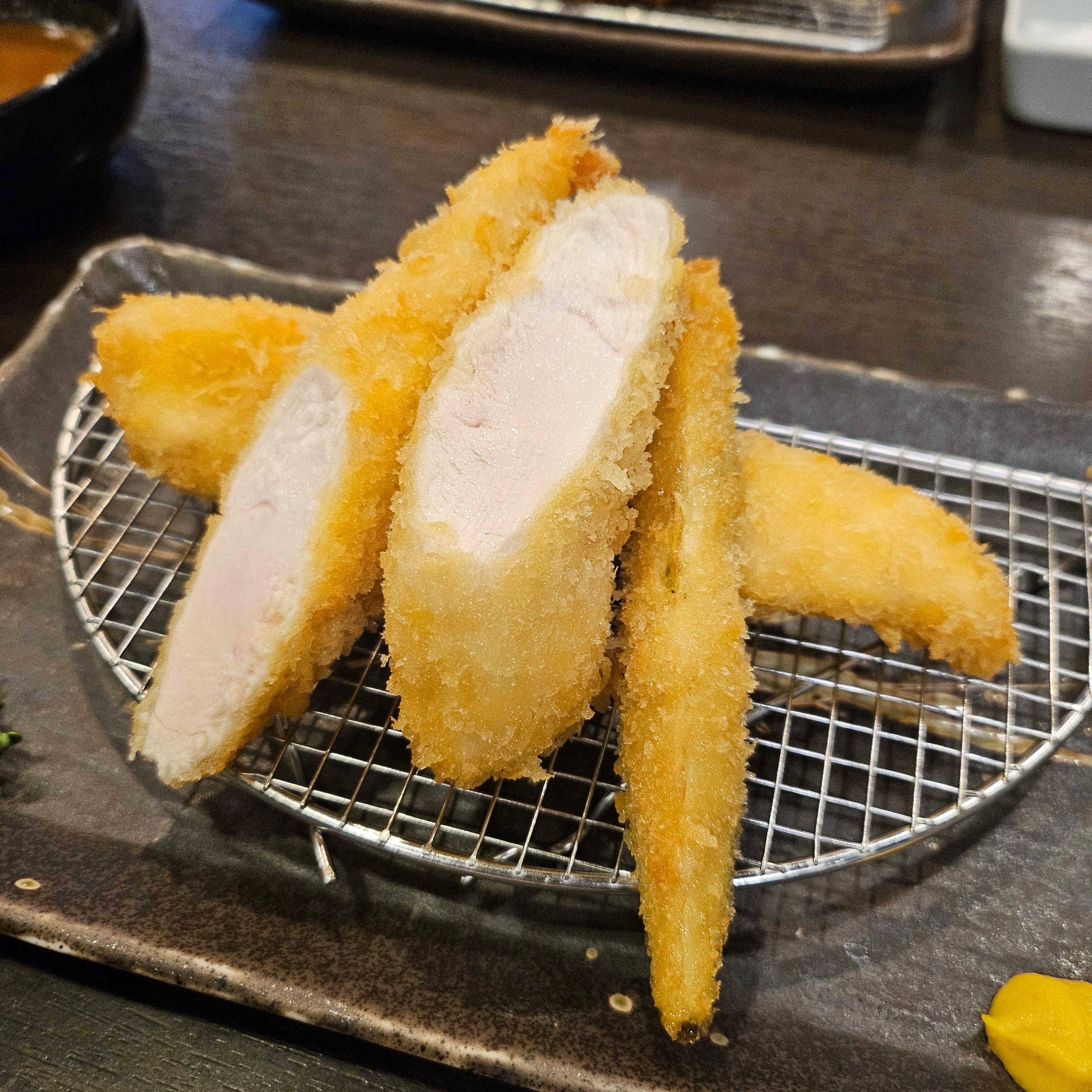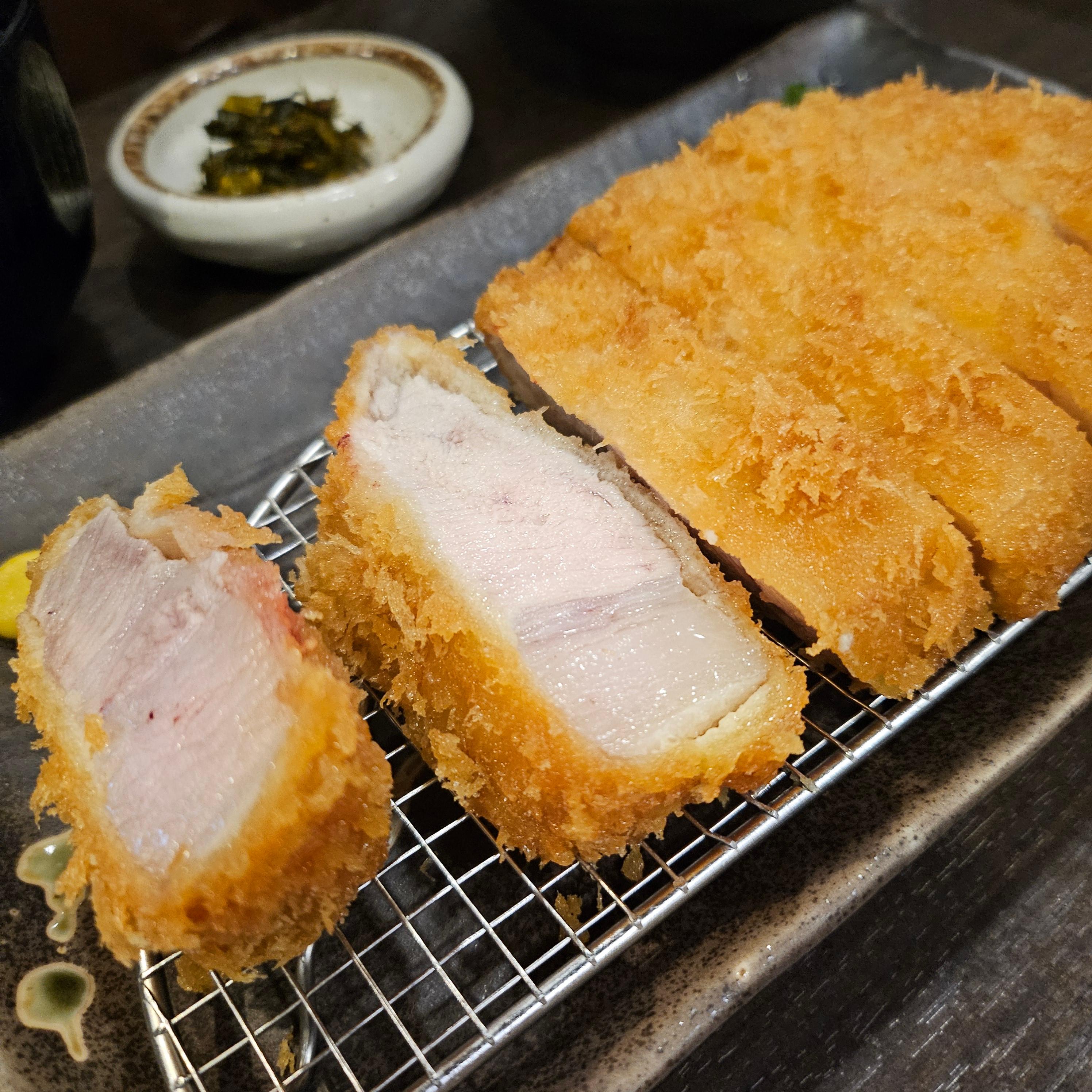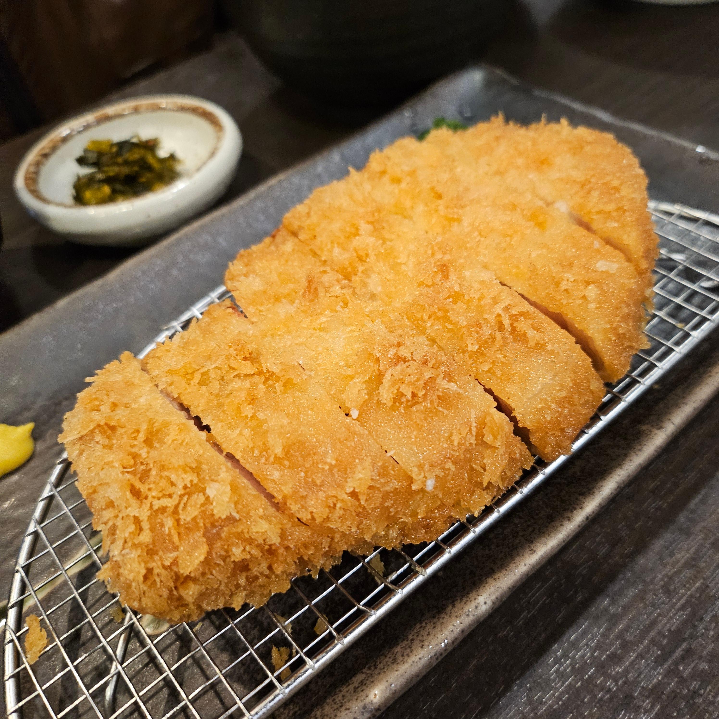 이마카츠의 대표 메뉴이자 간판 아이템은 단연 닭가슴살카츠입니다. “닭가슴살로 튀김을 만든다고?” 싶었는데, 생각보다 훨씬 부드럽고 촉촉해서 놀랐어요. 특히 외피는 바삭하지만 속은 퍽퍽하지 않고 말랑해서 지금까지 먹었던 닭가슴살 요리 중 가장 부드럽게 느껴졌습니다. 다만... 치킨에 절여진 한국 입맛 기준으로 보면 육향이 약한 점은 조금 아쉬웠어요. 기름 향이나 짠맛이 강한 한국식 튀김에 익숙한 분들이라면 다소 심심하게 느껴질 수도 있겠다 싶었어요. 그래도 이 정도 퀄리티의 고급 닭가슴살 튀김은 처음이었고, 담백하게 건강하게 한 끼 먹고 싶을 땐 딱이겠다는 생각이 들었습니다.