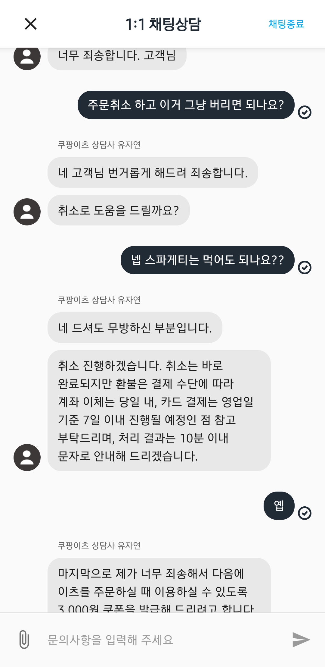 이래서 쿠팡이츠가 만족도가 더 높은가 싶기도 하고....