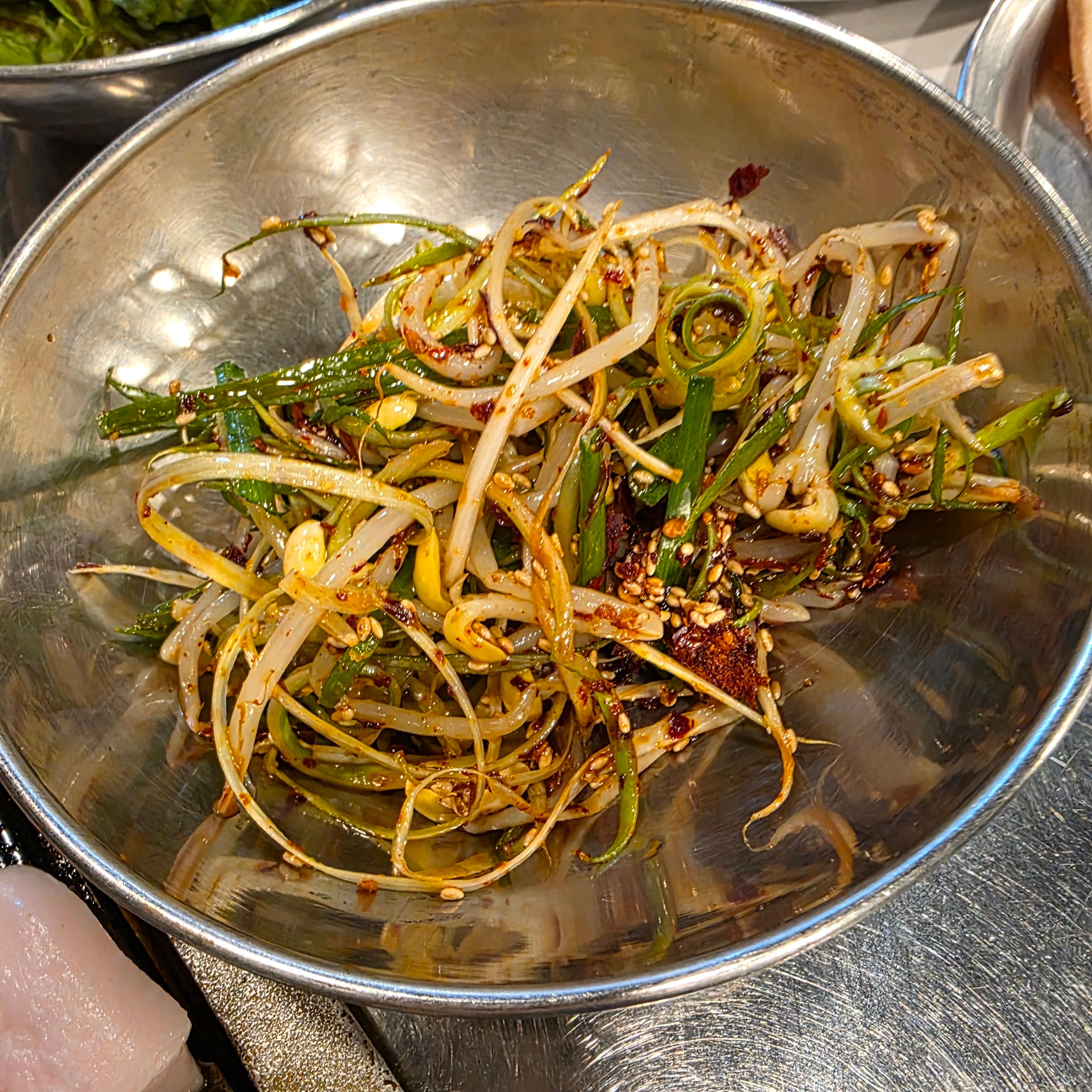 제가 원래 파절이 별로 안 좋아하거든요? 그런데 이 집 파절이는 진짜... 지금도 생각나요. 그냥 파에 양념 묻힌 수준이 아니라, 뭔가 간장 소스와 새콤한 맛의 밸런스가 아주 좋았어요. 고기 한 점에 파절이 한 젓가락 올려 먹으면 그야말로 환상의 콤비.