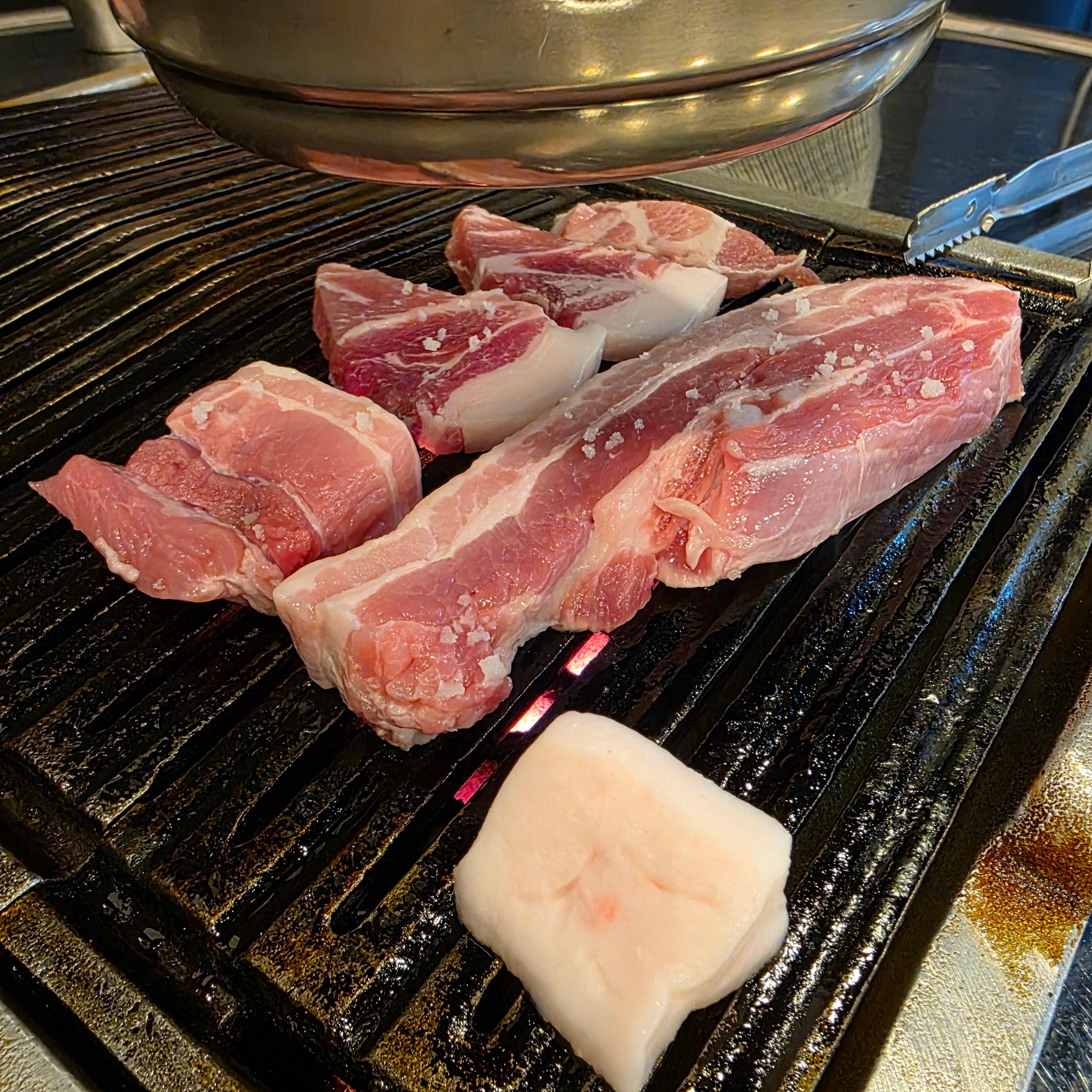 이날 저희가 시킨 고기 구성은 생삼겹살 1인분, 꼬들살 2인분, 항정살 1인분이었는데요, 각각의 고기가 다 다른 매력을 가지고 있어서 아주 재밌게 즐겼어요.