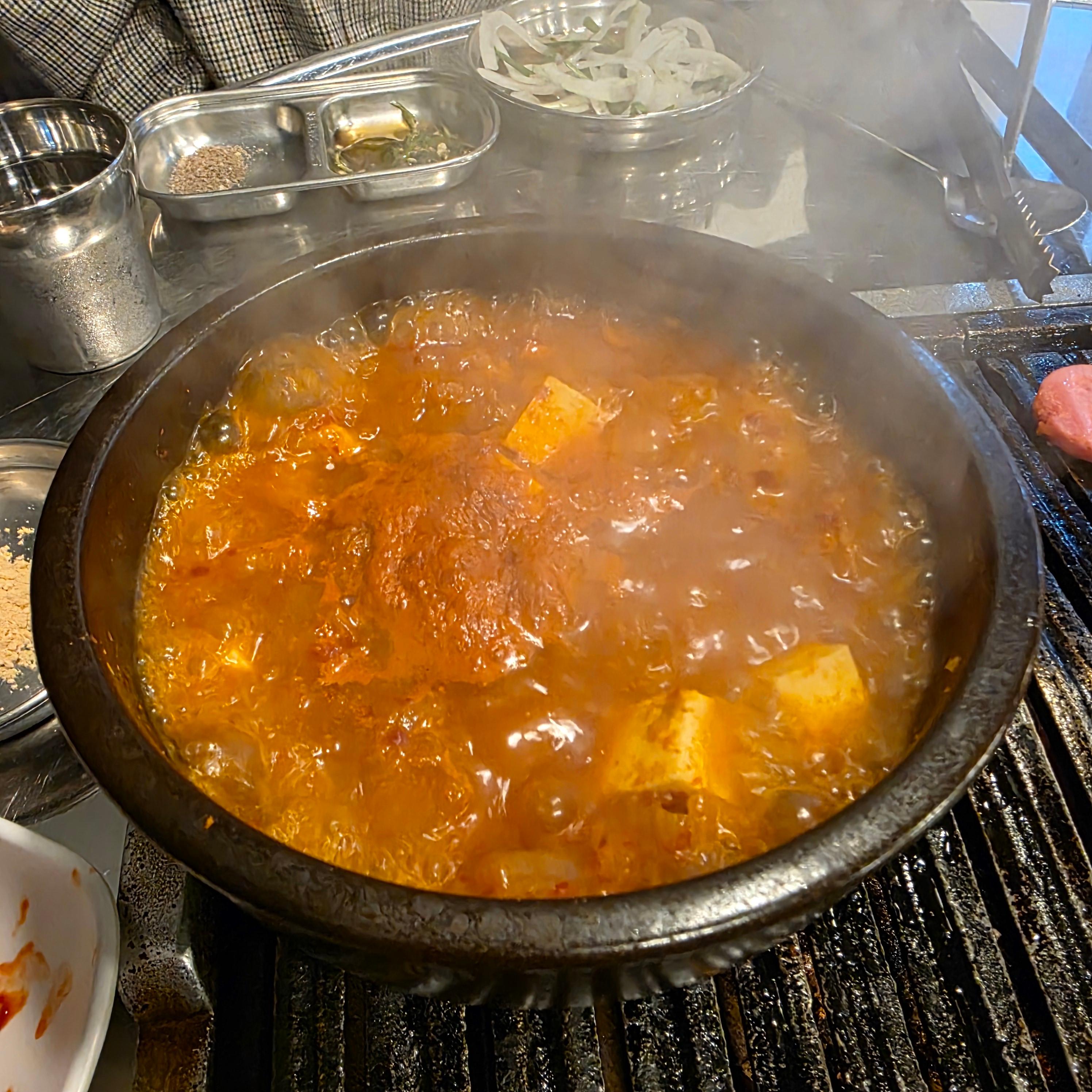 결과적으로... 아주 탁월한 선택이었어요. 고기 다 먹고 나서 국물 한 숟갈 딱 뜨는 순간, 이 집이 찌개도 잘한다는 걸 확 느꼈어요. 돼지고기와 잘 익은 김치가 우러난 그 얼큰한 맛! 숟가락이 멈추지 않았어요. 안 시켰으면 진짜 후회했을 것 같아요.
