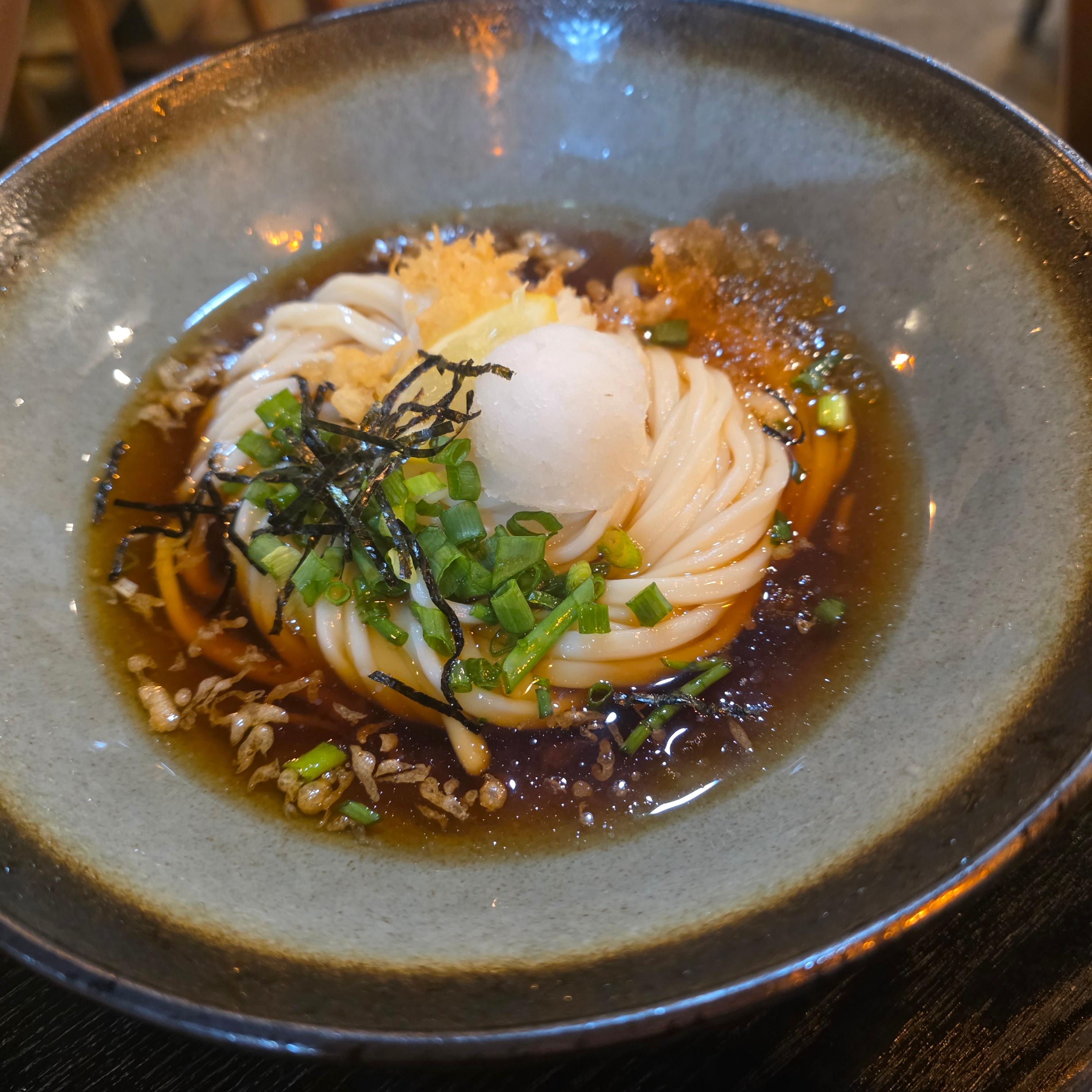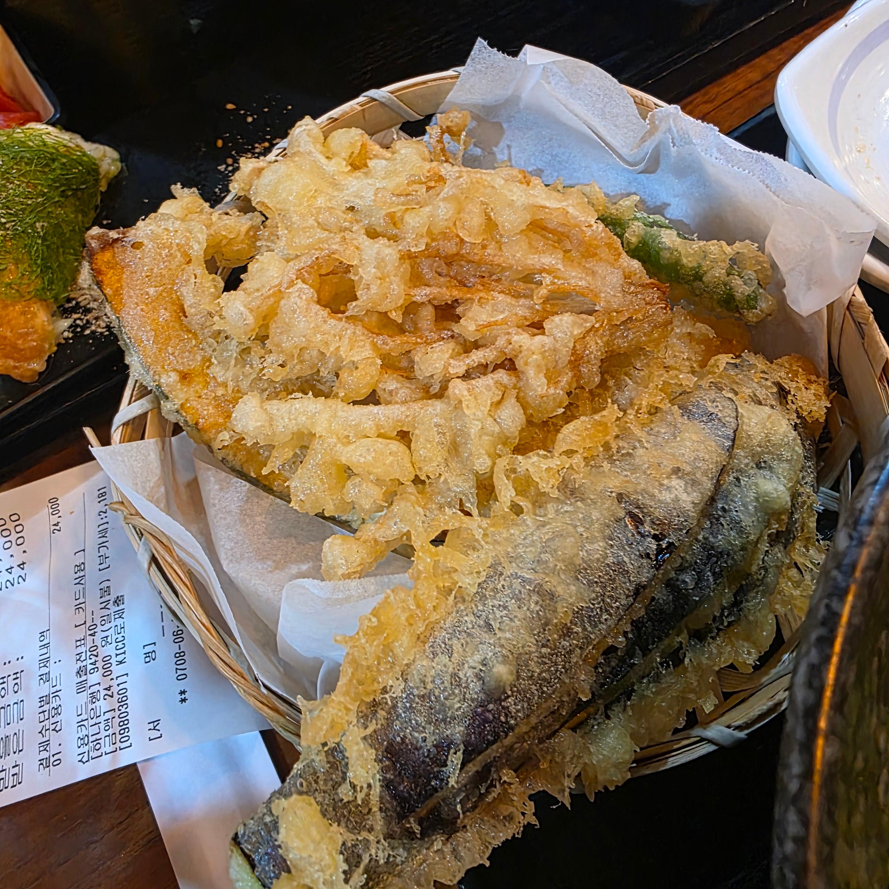 저는 따뜻한 우동에 고기 토핑을 추가했고, 함께 간 일행은 냉우동을 주문했습니다. 리뷰 작성 이벤트로 받은 튀김도 곁들였어요. 튀김은 깔끔하게 잘 튀겨져 기름기가 적었고, 바삭한 식감이 살아있어 괜찮았어요. 냉우동은 탱글한 면발이 매력적이었고, 쯔유 소스와 잘 어우러져 여름철에 특히 좋을 것 같았어요. 반면 따뜻한 우동은 면이 국물에 오래 있어 그런지 조금 풀어진 식감이었는데, 이 부분은 살짝 아쉬웠습니다. 그래도 국물 맛은 깔끔하고 간이 적당해 고기 토핑과 함께 먹기 좋았어요.
