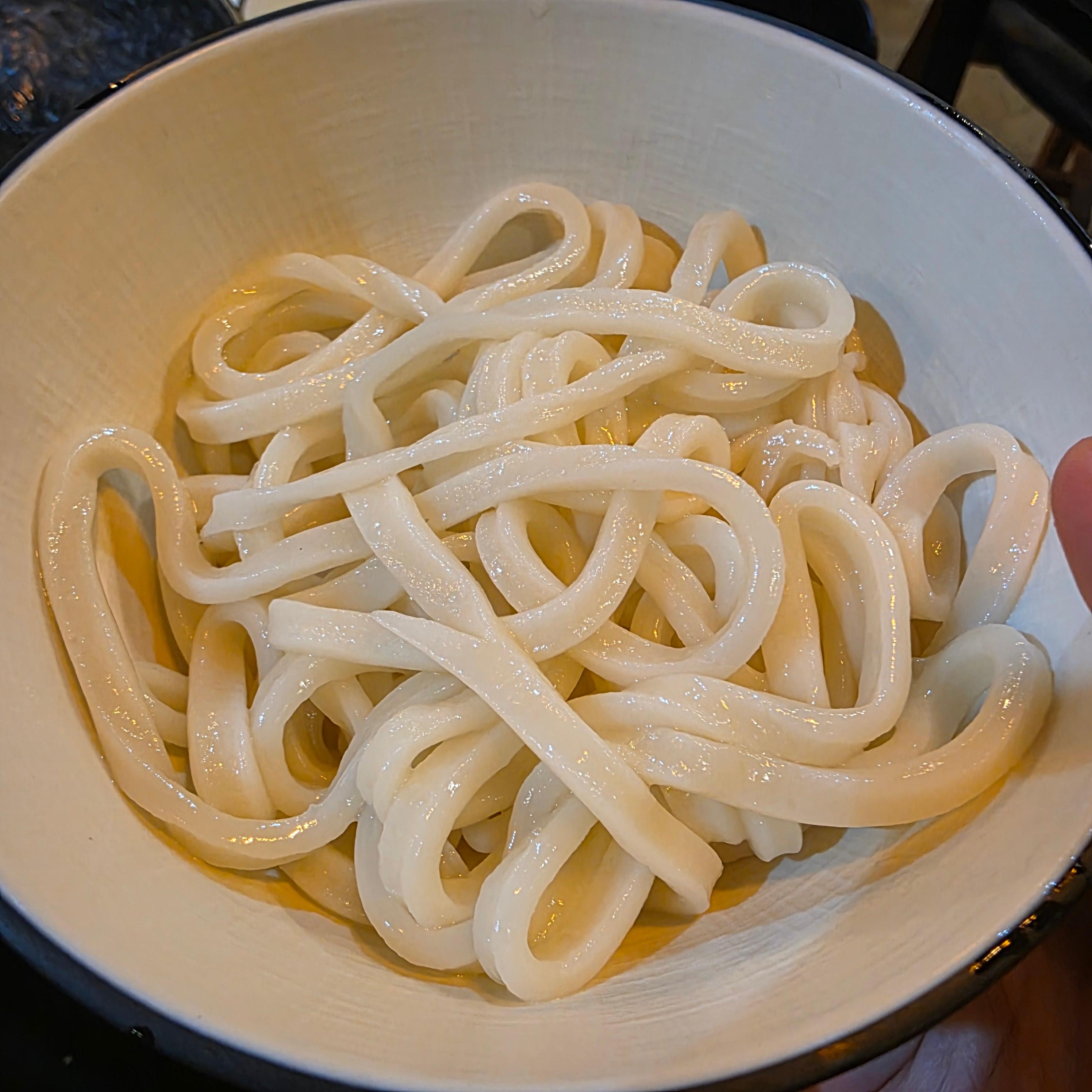 카가와의 가장 큰 매력 중 하나는 바로 면 리필 무료 서비스입니다. 우동을 좋아하는 제게는 정말 반가운 혜택이었어요. 배부를 때까지 마음껏 쿰척쿰척 먹을 수 있으니 가성비 측면에서 훌륭하죠. 다만 리필된 면이 물기가 덜 빠진 채로 나와서 국물에 넣으면 조금 싱거워지는 단점이 있었어요. 이 부분만 개선된다면 만족도가 훨씬 높아질 것 같아요. 그래도 가격 대비 양과 질을 고려하면 전반적으로 만족스러웠습니다.