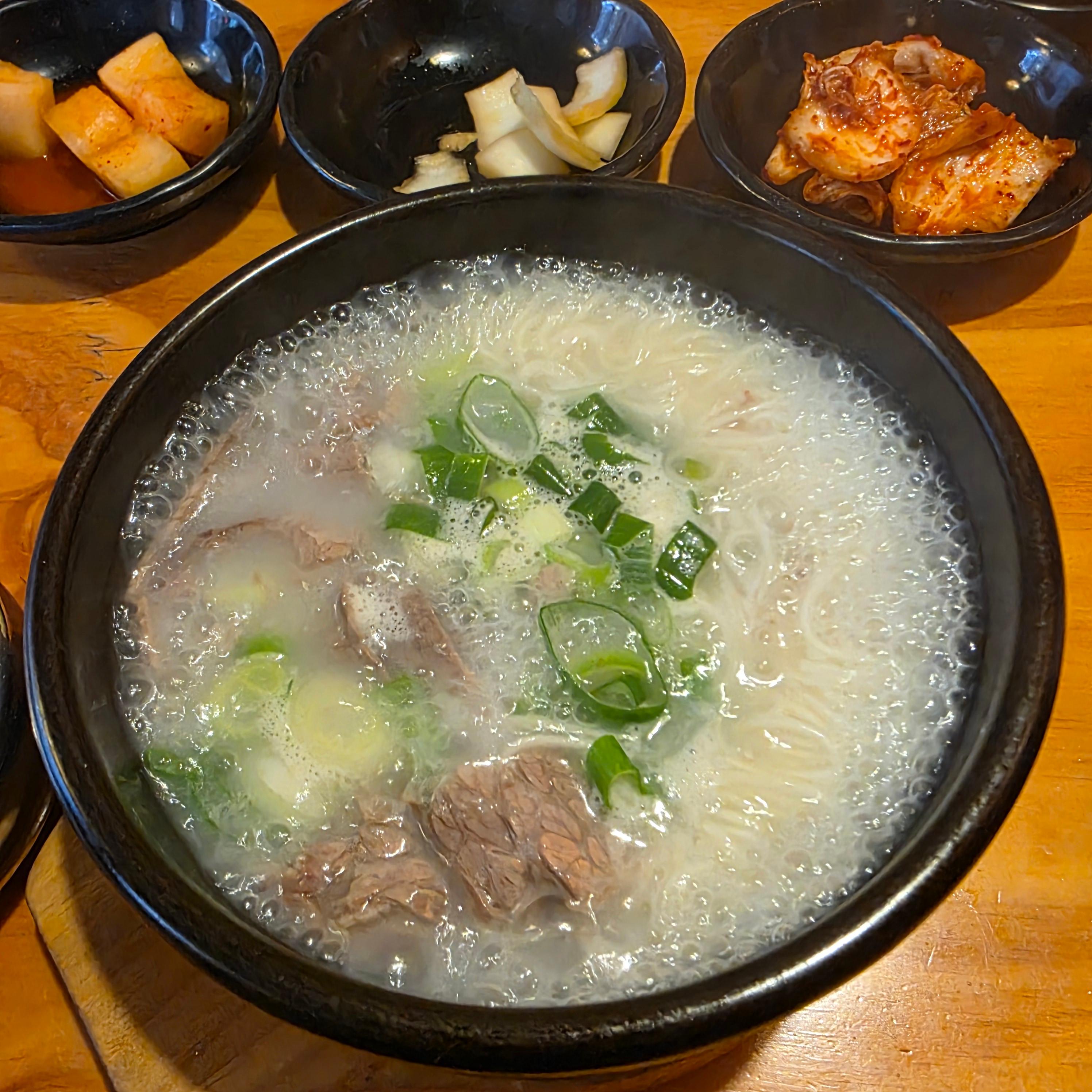 제가 주문한 메뉴는 설렁탕이었는데, 솔직히 말씀드리자면 기대에 조금 못 미쳤습니다. 국물 맛이 사골의 진한 풍미보다는 맹물에 국물을 푼 듯한 느낌이 강했어요. 깊고 진한 맛을 기대했는데, 국물이 너무 담백해서 오히려 심심하다는 생각이 들었습니다. 설렁탕의 매력은 고기와 사골에서 우러나오는 구수하고 깊은 맛인데, 그 부분이 부족했던 게 아쉬웠습니다. 다만 함께 나온 밑반찬 중 김치가 의외로 단맛이 강했는데, 외국인 손님들이 많이 찾는 곳이라 그런가 싶었어요. 하지만 제 입맛에는 나쁘지 않았고, 오히려 밍밍했던 설렁탕을 김치와 함께 먹으니 조화가 맞아 그럭저럭 먹을 만했습니다. 설렁탕만 놓고 보면 제 기준에선 다시 찾고 싶다는 마음은 조금 덜했던 메뉴였습니다.