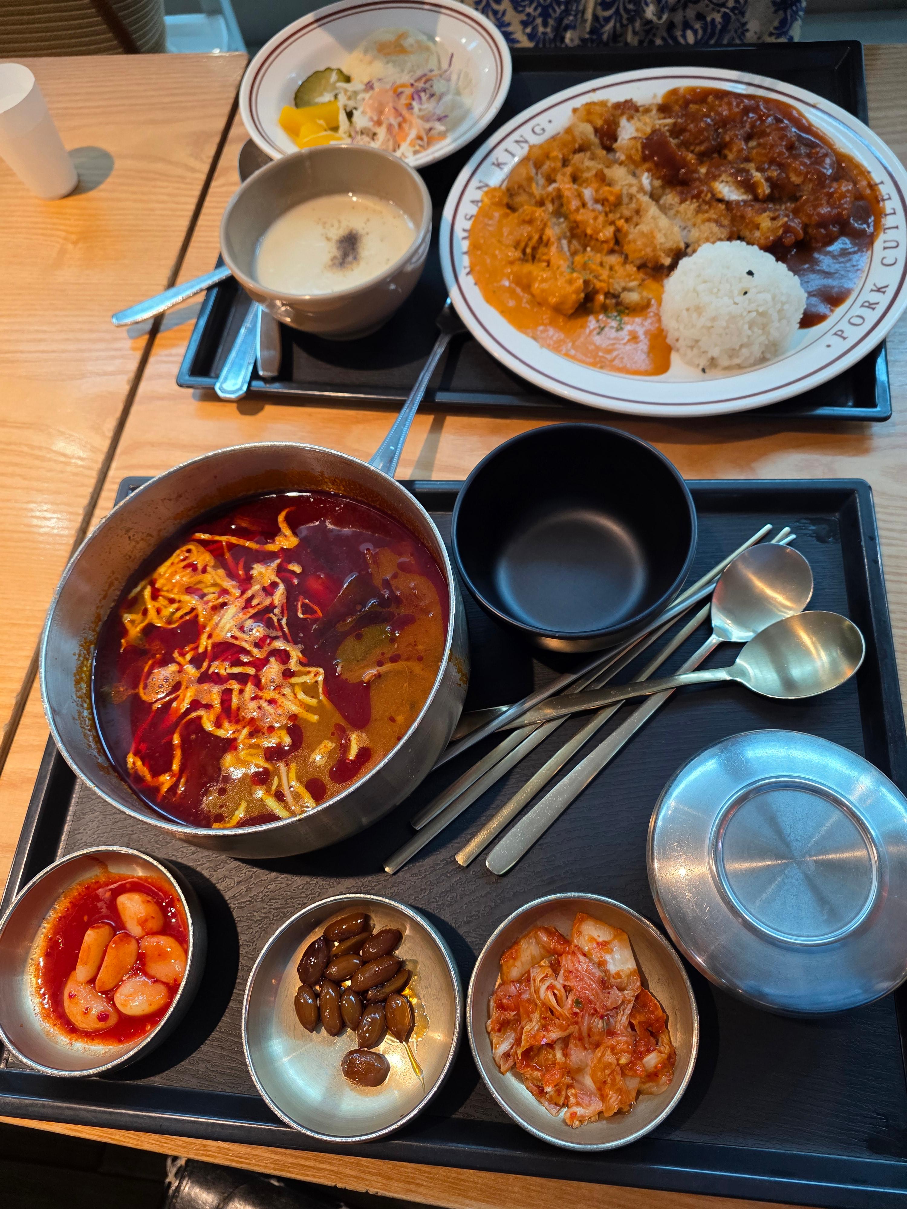 안녕하세요, 세미콜론입니다. 오늘은 8월 말, 여행 가기 전에 들렀던 인천공항 푸드코트 방문 후기를 써보려고 해요. 비행기 타기 전에 뭘 먹을까 늘 고민되는데, 면세점 근처 푸드코트는 선택지가 다양해서 좋더라구요. 이번에는 손수헌 전통 육개장(12,000원)과 남산왕돈까스 반반로제(13,000원)을 주문했어요. 사실 공항 음식은 늘 기대보단 아쉽다는 선입견이 있는데, 그래도 궁금해서 도전해봤습니다. 결론부터 말하자면 ‘무난하다, 가격 대비 공항 치고 괜찮다’라는 느낌이었어요 ㅋㅋ