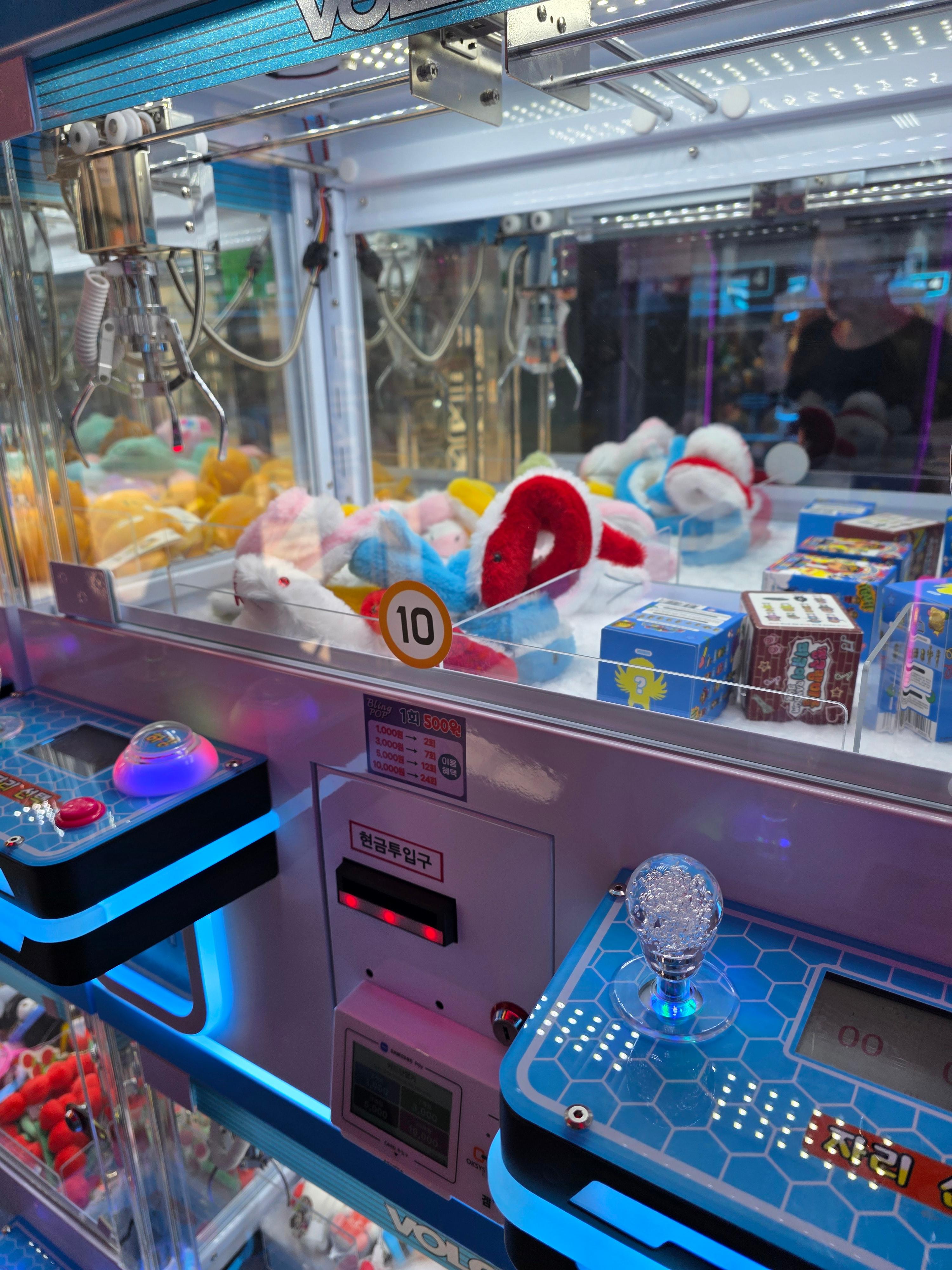 뽀끼팡에서 인형뽑기를 하려면 보통 1게임에 500원이에요. 그런데 3,000원을 내면 7게임을 할 수 있어서, 사실상 한 판에 429원 꼴로 즐길 수 있는 셈이었음. 카드 결제도 가능해서 현금이 없어도 부담 없이 즐길 수 있었습니다. 요즘 인형뽑기샵 중에서는 카드 결제가 안 되는 곳도 있는데, 여기는 확실히 편리했음. 가격만 놓고 보면 그냥 무난한 수준인데, 문제는 ‘기계 셋팅’이죠. 초반에는 잘 뽑혔는데 점점 체감 난이도가 올라간 듯한 느낌이 있었어요ㅋㅋ 내 기준에서는 그냥 운빨이 좀 줄어든 거 같기도 하고, 기계마다 편차가 큰 게 확실했음.