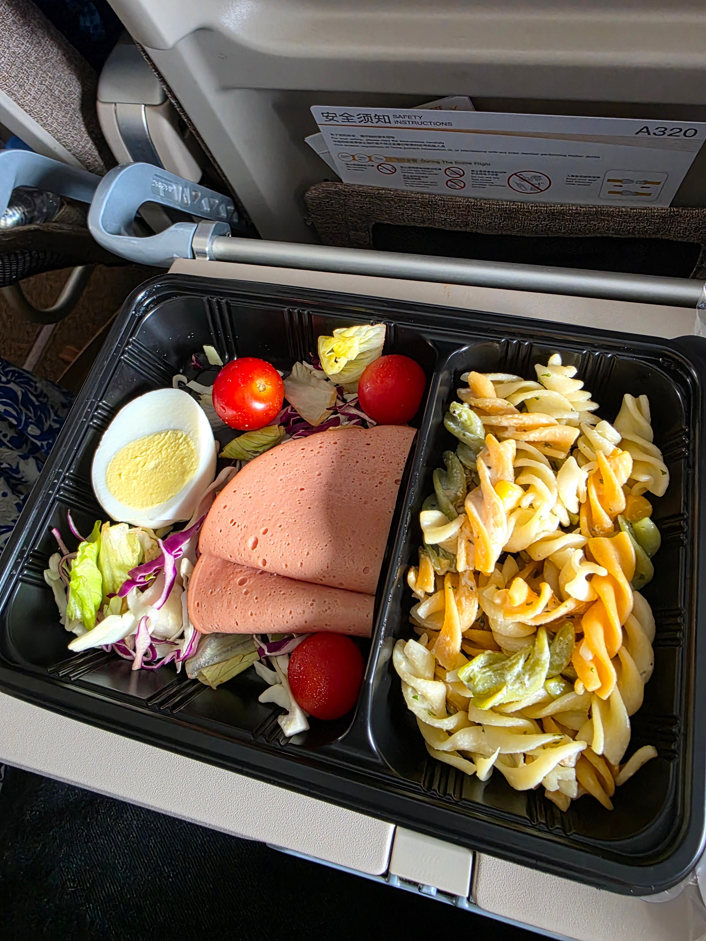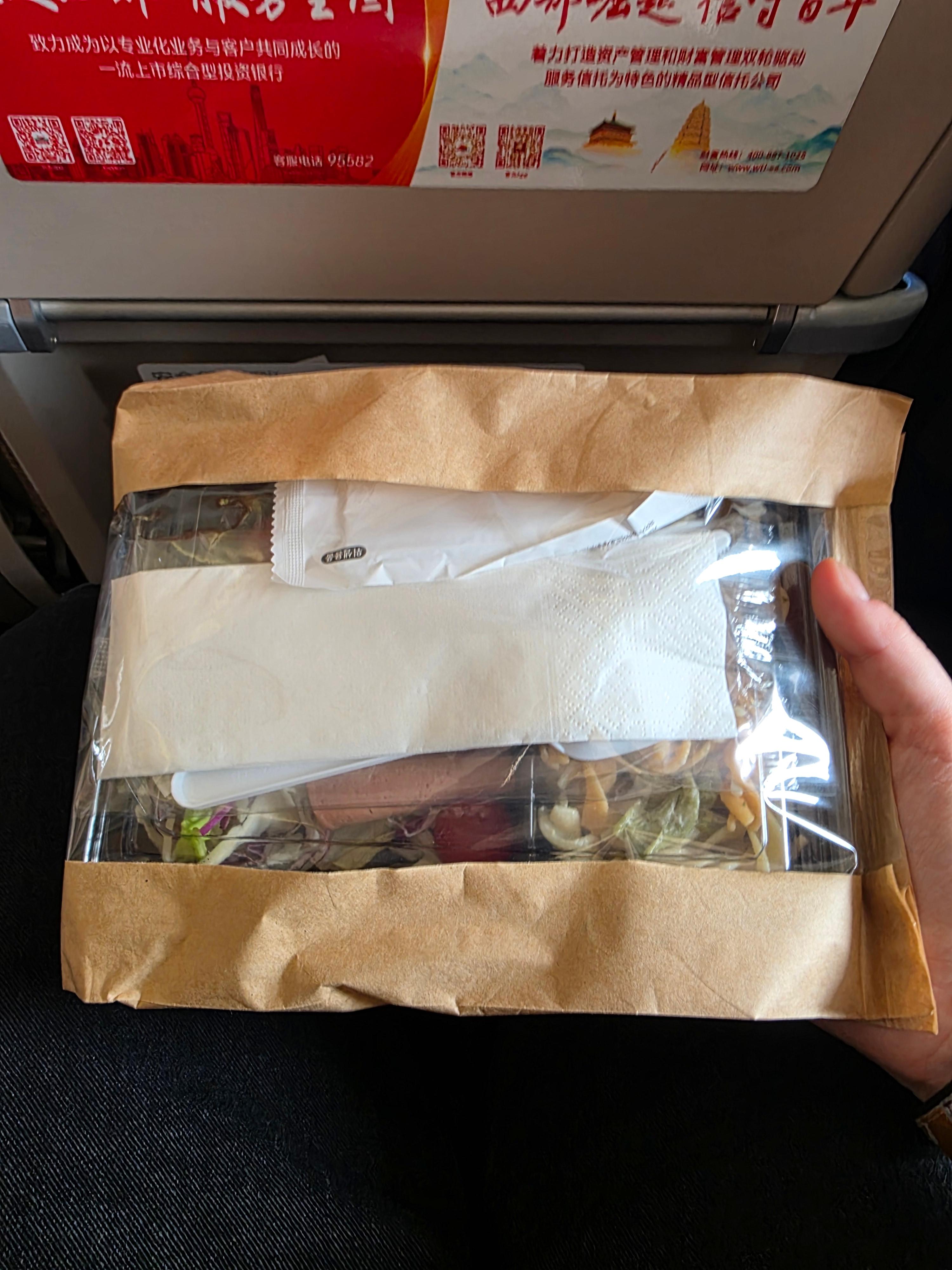 솔직히 중국동방항공 기내는 엄청 쾌적하다기보단 평범한 수준이었어요. 좌석 간격이 넉넉한 건 아니지만, 단거리 노선인 칭다오비행기라서 크게 불편하지는 않았습니다. 기내 승무원들도 제법 친절했고, 필요한 요청은 빠르게 응대해줬어요. 무엇보다도 깜짝이었던 건 기내식 제공. 솔직히 말해 맛은 없었음ㅋㅋ 그냥 기본적인 기내식 느낌인데, 어쨌든 식사가 나온다는 것만으로도 만족했어요. 대부분 저가 항공에서는 음료만 제공되거나 아예 아무것도 안 주는데, 동방항공은 저렴한 가격임에도 불구하고 기내식을 챙겨줬다는 점이 차별화된 포인트였어요.
