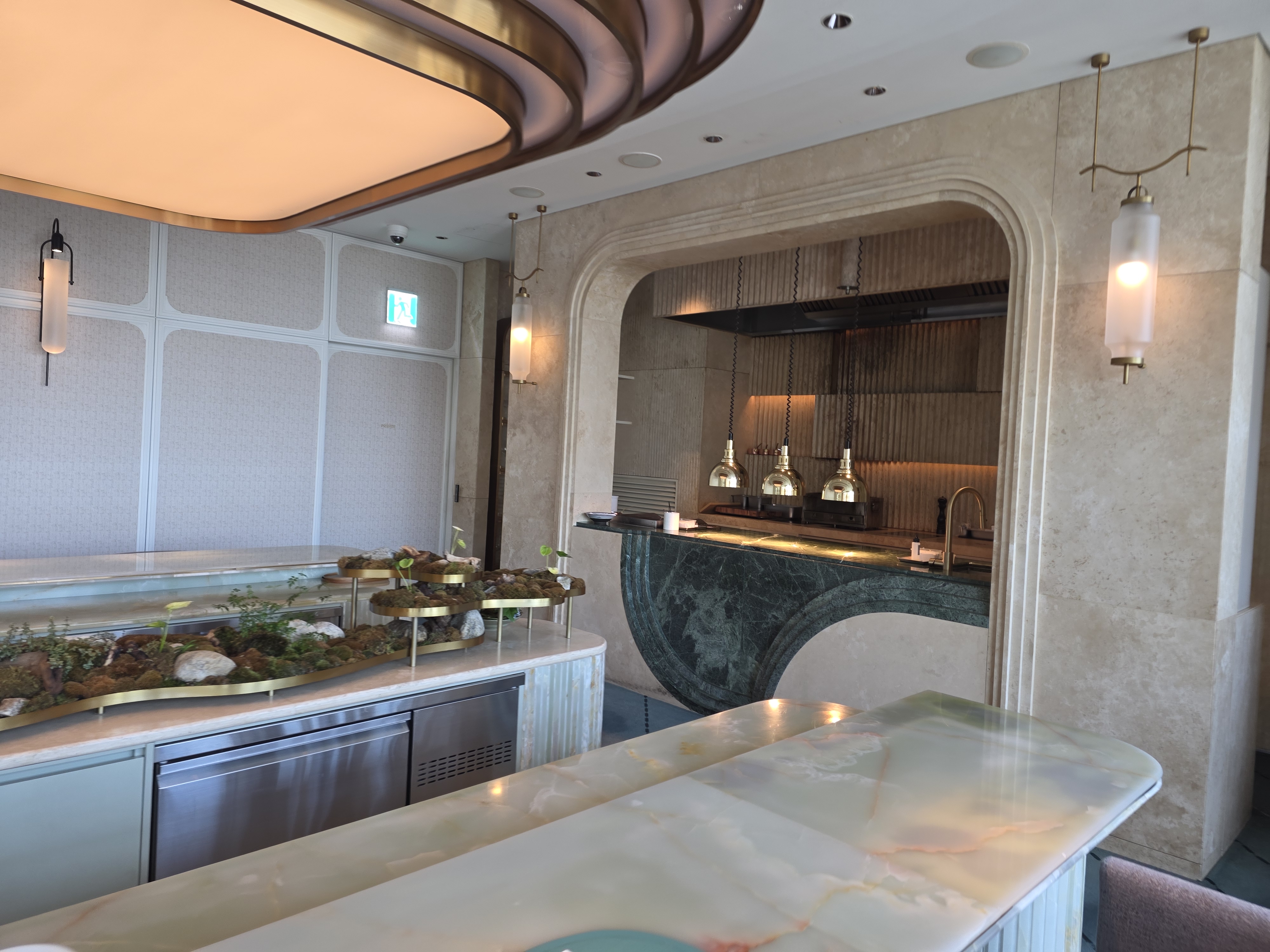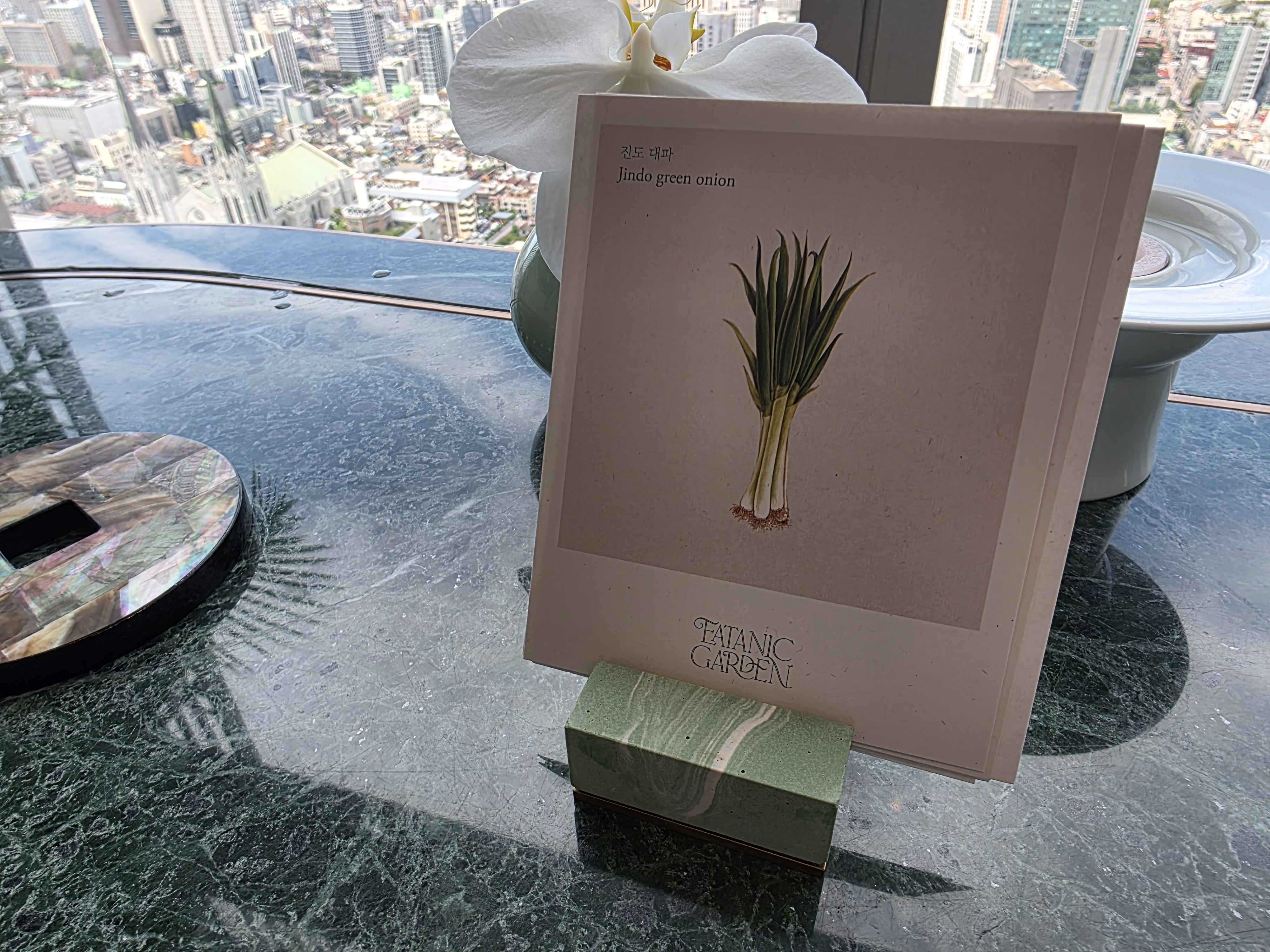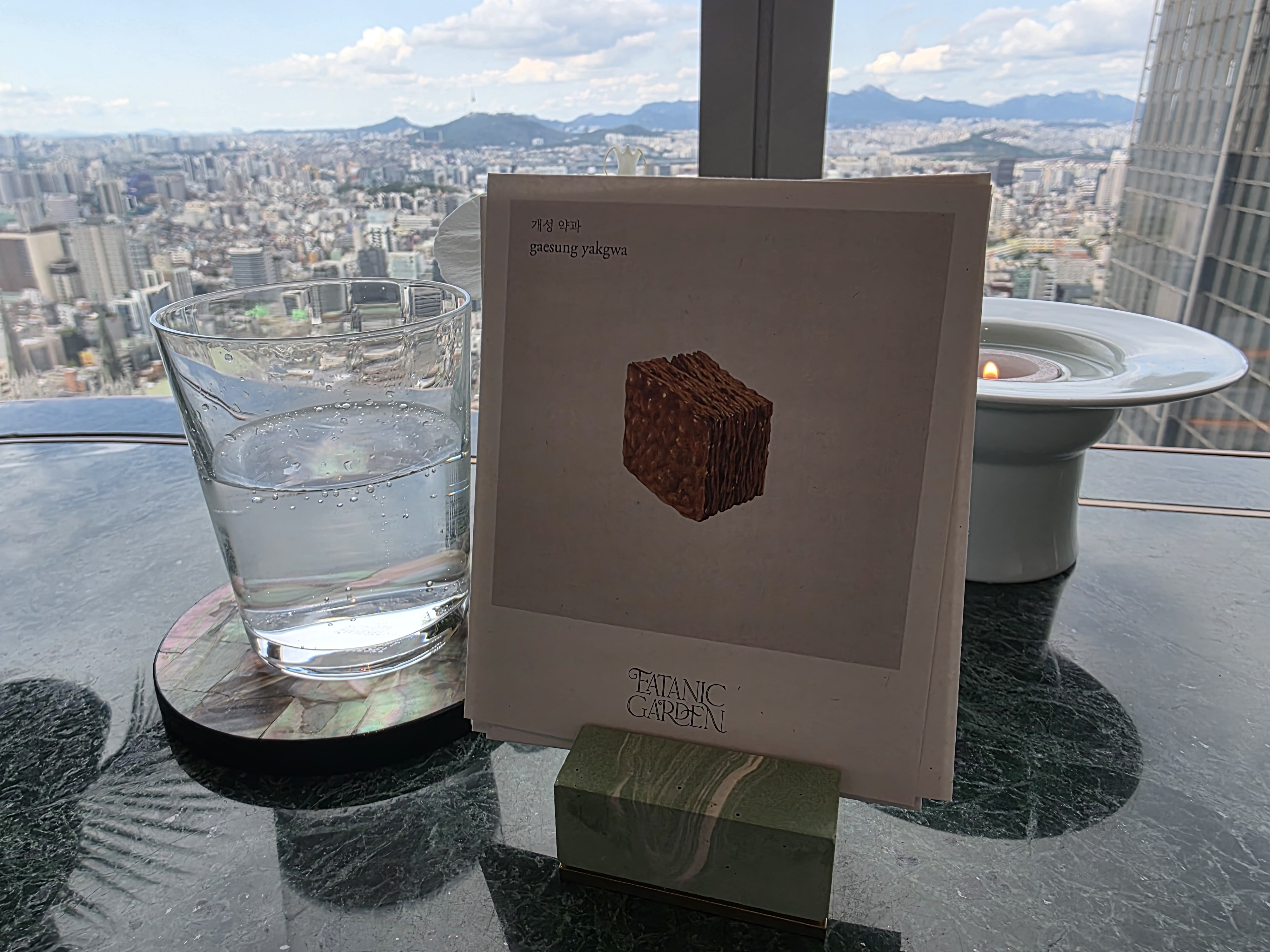 이타닉가든은 36층에 위치해 있어서 들어서는 순간부터 뷰가 탁 트입니다. 주차도 가능하고, 입장하자마자 세련된 인테리어와 차분한 분위기가 압도적이에요. 런치임에도 불구하고 손님들이 제법 있었는데, 조용히 대화 나누며 즐길 수 있는 분위기라 더 좋았습니다. 사진 찍을 수 있도록 자연스럽게 배려해주셔서 ‘여기는 경험을 기록해가라고 준비된 곳이구나’ 싶었음. 무엇보다 서비스가 디테일하게 다가왔던 게, 제가 왼손잡이인데 처음 한 번 오른쪽에 놓으신 이후로는 전부 왼쪽에 세팅해주셨다는 거예요. 이 정도면 그냥 배려의 끝판왕 아닐까요?