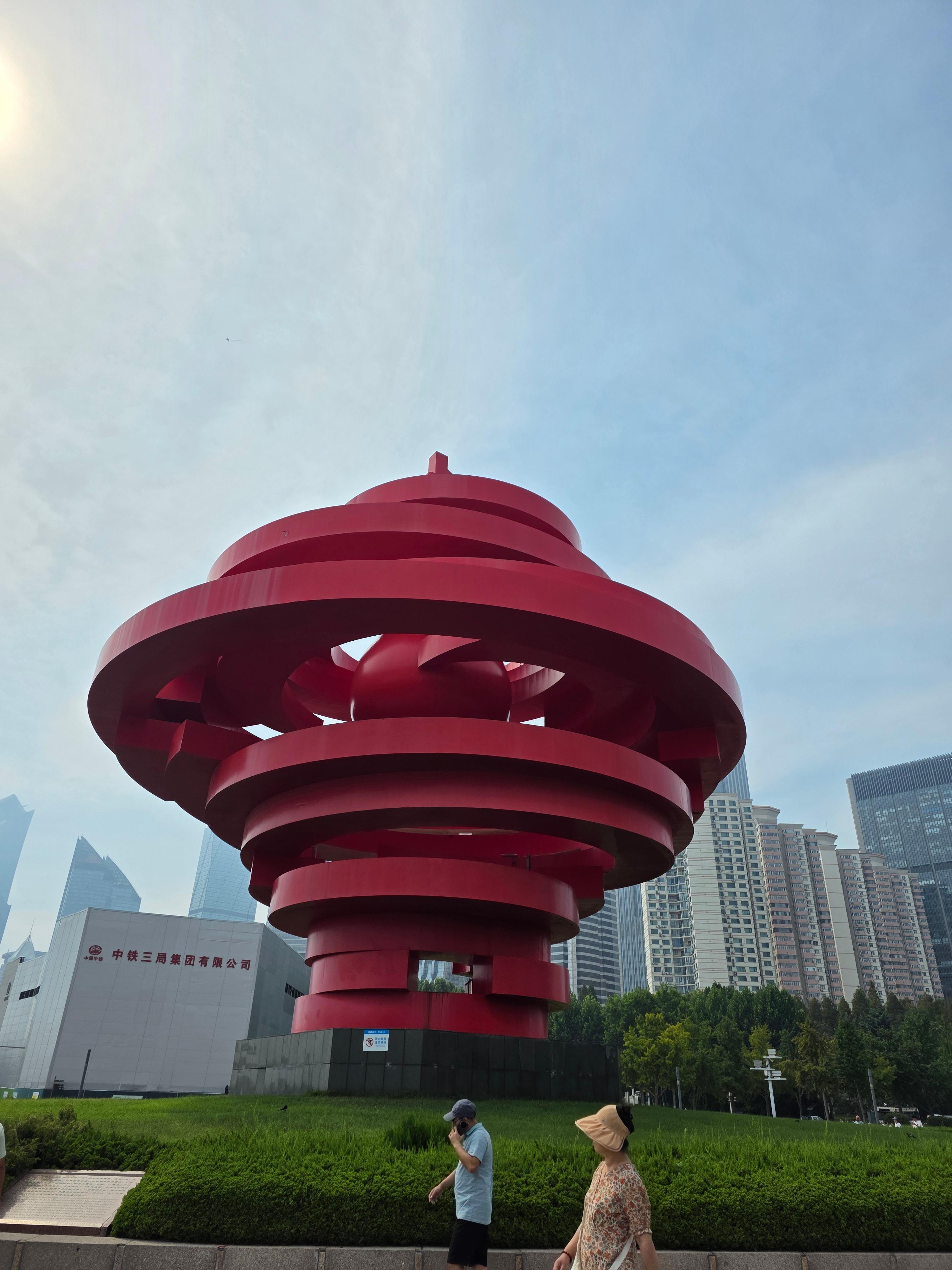 많은 분들이 칭다오 여행 오면 밤의 오사광장을 찾는데, 낮에 보면 또 다른 매력이 있습니다. 오월의바람 조형물이 선명한 붉은색으로 빛나는데, 파란 하늘과 바다를 배경으로 서 있으니 대비가 확 살아서 이국적인 느낌이었어요. 확실히 사진 찍기에는 낮이 더 깔끔합니다. ‘괜히 밤에만 가야 한다고 생각했네~ 낮에도 오길 잘했다’는 생각이 들었음.