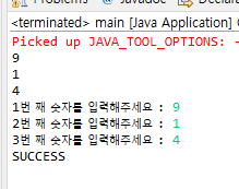 - 모든 자리의 숫자가 같을 경우 성공(SUCCESS)