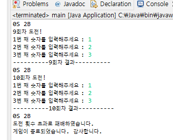 System.out.println("도전 횟수 초과로 패배하였습니다.");