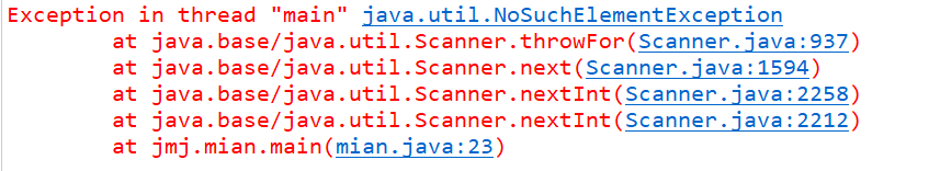 스캐너를 사용하던 중 Exception in thread "main" java.util.NoSuchElementException 문구 출력됨