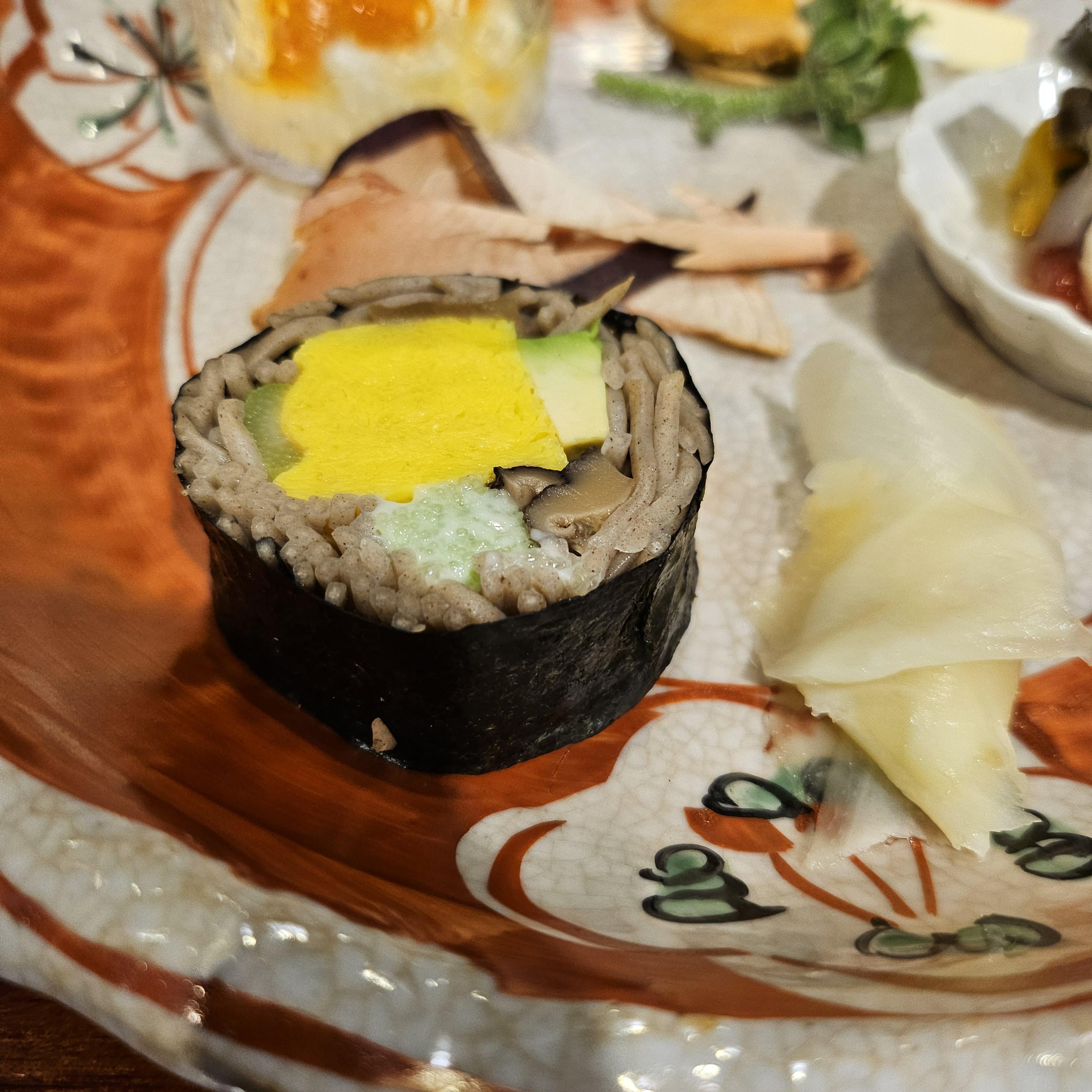 메밀김밥. 아주 맛이 좋음. 속이 불편하지 않은? 그런 맛이었다. 한입에 넣고 우물우물 .