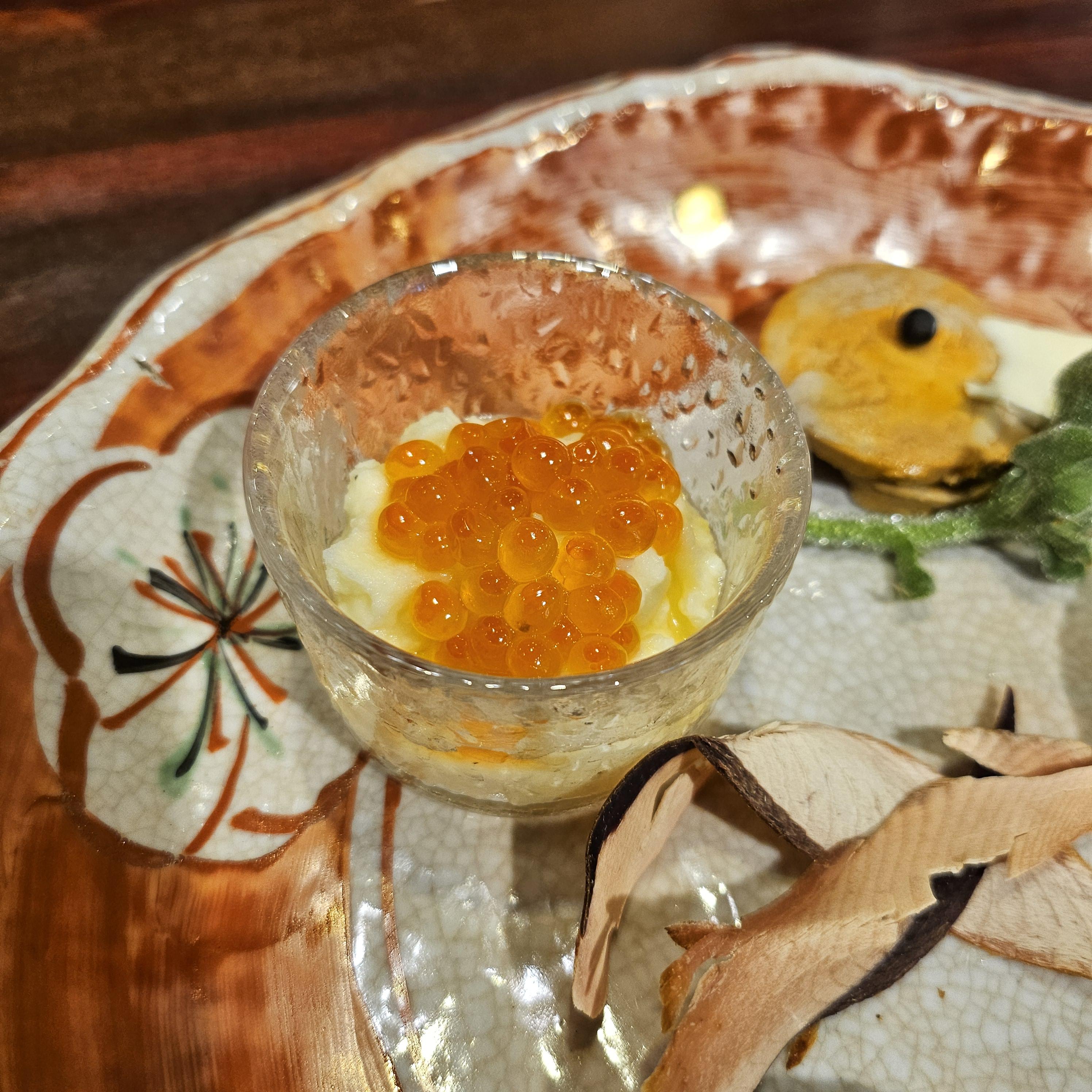 구운떡에 어란을 끼워서 주심.