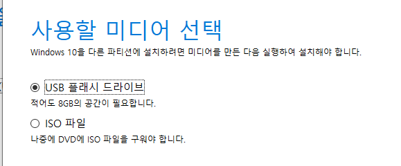 위 이미지처럼 최 하단에 있는 지금 도구 다운로드 버튼을눌러야 한다. 8기가의 용량이 필요하기 때문에 미리 USB는 포맷해서 준비했다.
