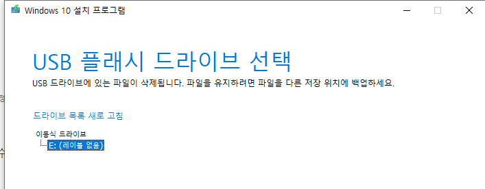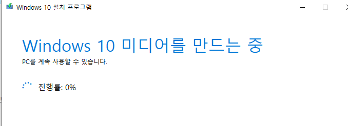 USB 안에 Windows 10을 다운로드 받아준다. 이 작업을 하면서 다른 작업을 동시에 할 수 있다.