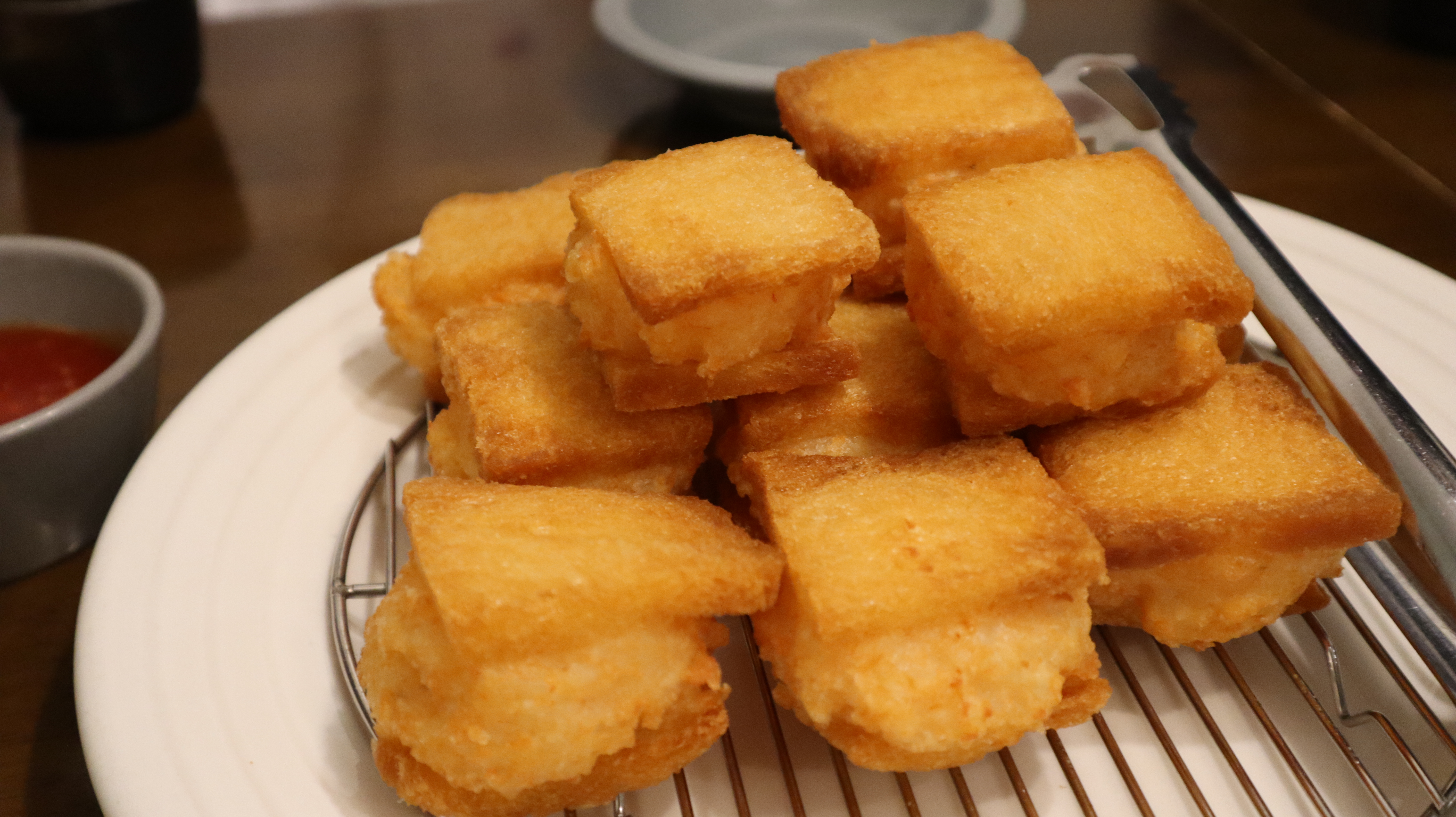 목란의 멘보샤는 아주 바삭한게 특징이다. 그리고 빵이 비교적 얇은편.